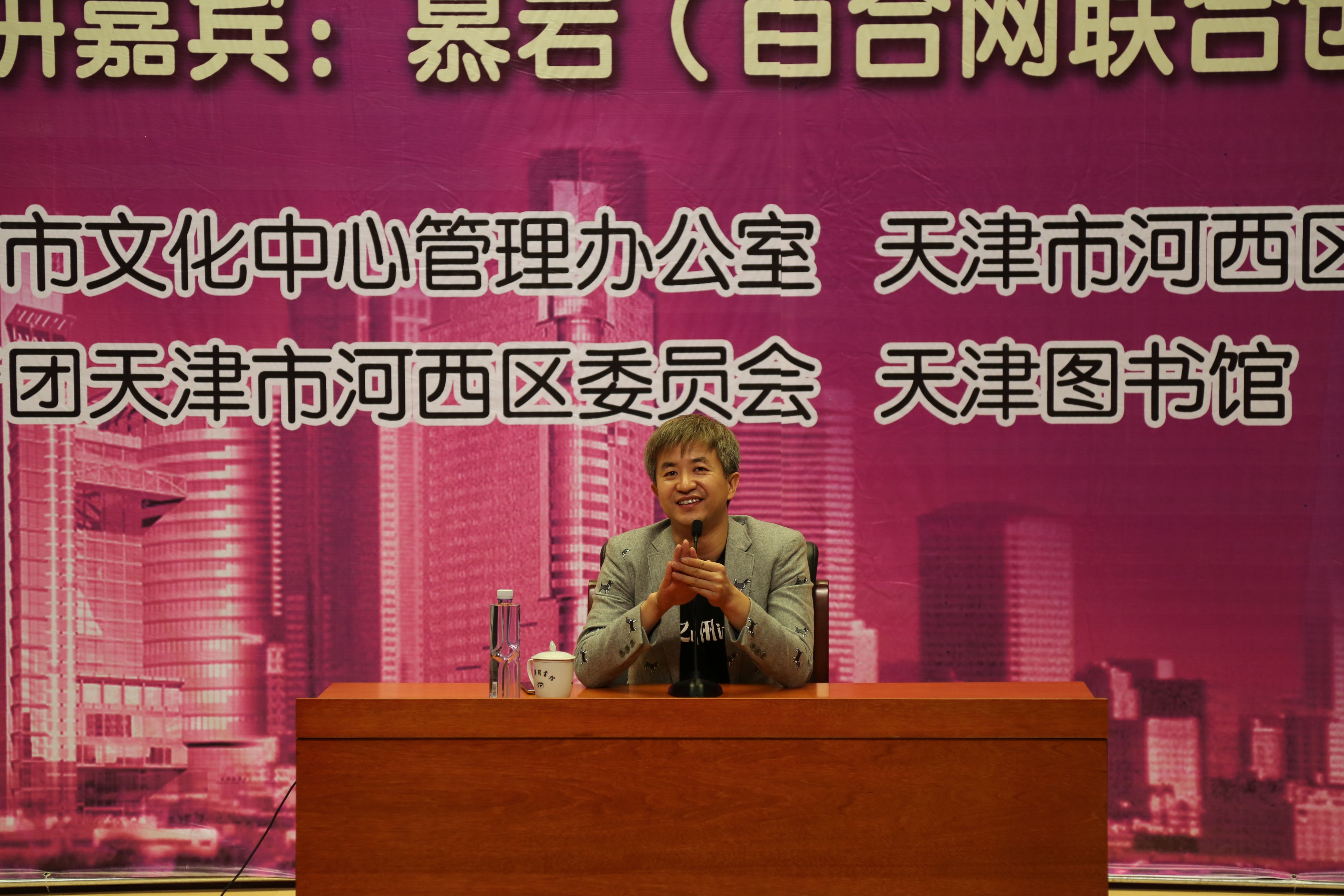10月12日,由天津市文化中心管理办公室、河西区楼宇经济管理办公室、河西团委、天津图书馆联合主办的青春红砚•海津讲坛联合公益讲座《慕岩和你谈“恋爱”》在天津图书馆文化中心馆报告厅举行,百合网联合创始人、首席幸福官慕岩先生与300余名青年探讨爱情。