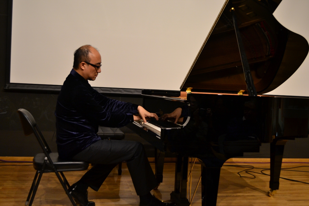 讲座一开始首先由李廷强先生为我们演奏了李斯特的《B小调钢琴奏鸣曲》。经过25分钟的演奏,读者们对这部作品的旋律有了初步的了解。演奏结束后李廷强先生为我们介绍了这部作品的作者、创作背景以及作品特点。李斯特的《b小调奏鸣曲》在钢琴文献中地位显赫,19世纪钢琴文献中占有里程碑式的特殊地位。这部传世巨作,不仅开创了单乐章奏鸣曲式的先河,庞大而复杂的结构,殷实的内容和色彩斑斓的和声语汇,都为我们的解读与演绎提供了广博的空间。这首奏鸣曲既反映出作者个人世界观中的矛盾,也深刻的反映了当时欧洲知识分子浪漫主义思想意识中的矛盾。在讲到演奏时,基于作品本身的基调和性质,李廷强先生讲到对于作品的演绎态度,应当更多的从音乐本质出发,通过内省、反思入手,解释作品本身所呈现的平衡、对称、完美的艺术形态。