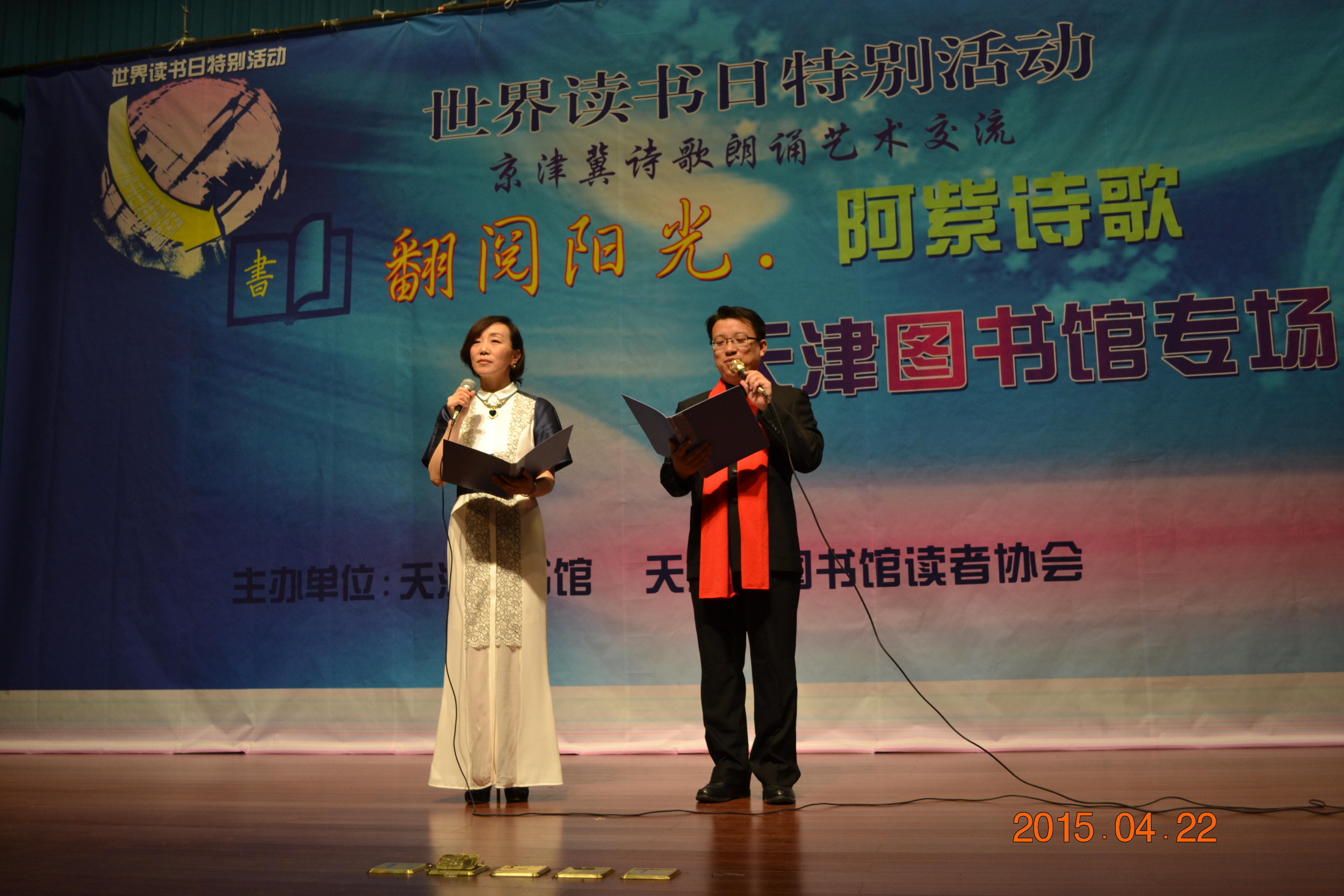 4月22日下午,由天津图书馆、天津市图书馆读者协会共同举办的世界读书日特别活动——京津冀诗歌朗诵艺术交流,翻阅阳光 阿紫诗歌专场在天津图书馆复康路报告厅如期举行。