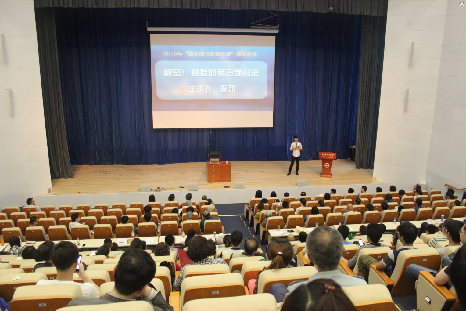 为了让更多的津门学子抓住英语学习的精髓,2015年4月25日下午,天津图书馆与北京新东方迅程网络科技有限公司联合举办的“解密!独特的英语学习法”如期在文化中心馆报告厅举行,本次讲座特别邀请到新东方天津学校国外考试部北美考试专家李劲老师。