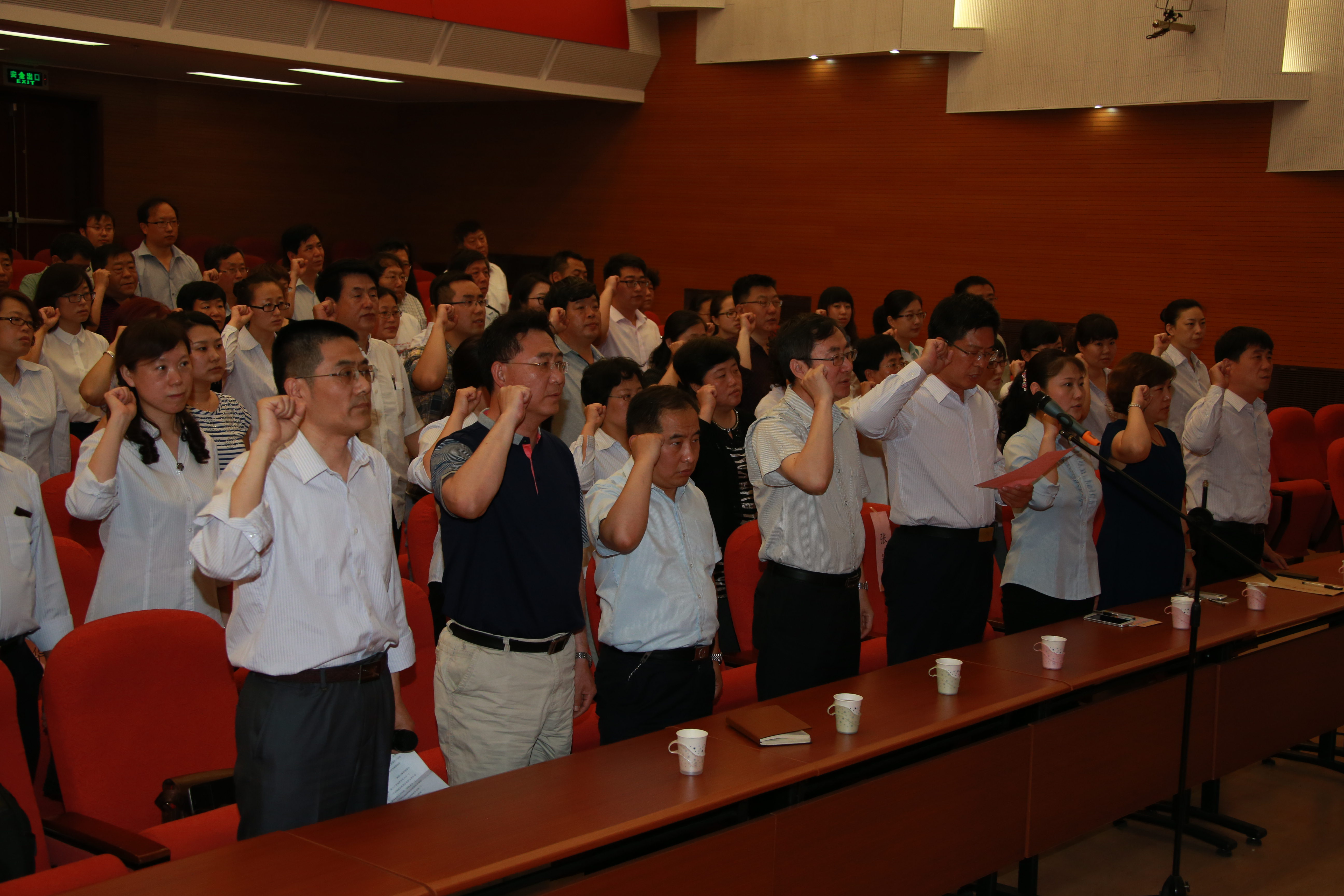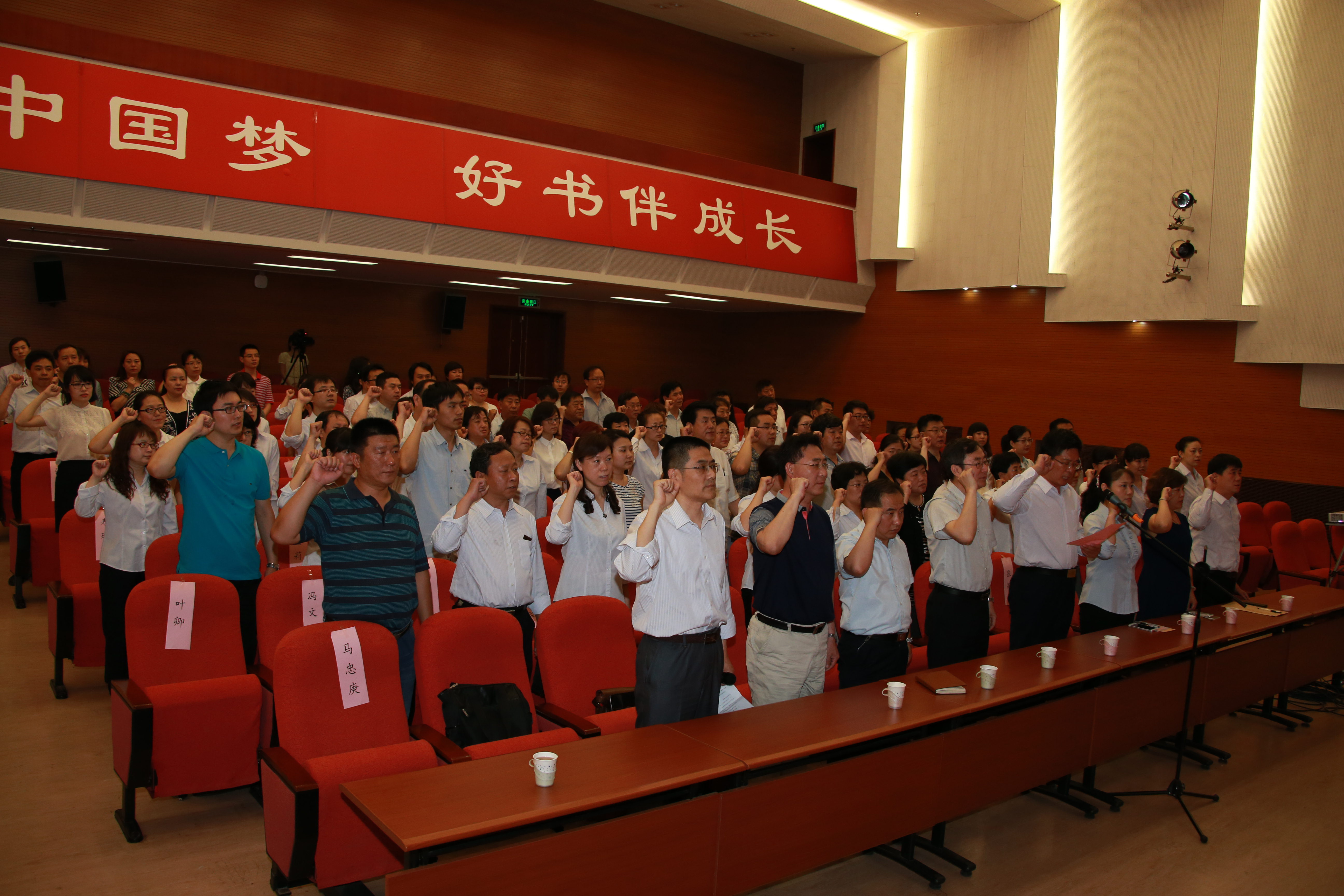 2015年6月1日上午,天津图书馆复康路馆报告厅响起了庄严的国歌声。为贯彻落实局党委、驻局纪检组指示精神和工作部署,纪念中国共产党建党94周年,进一步增强党员的党性党风党纪意识,强化组织观念、纪律观念,天图全体在职党员、预备党员、入党积极分子及部分党外干部正在这里举行“重温入党誓词”和“党性党风党纪教育”专题活动。