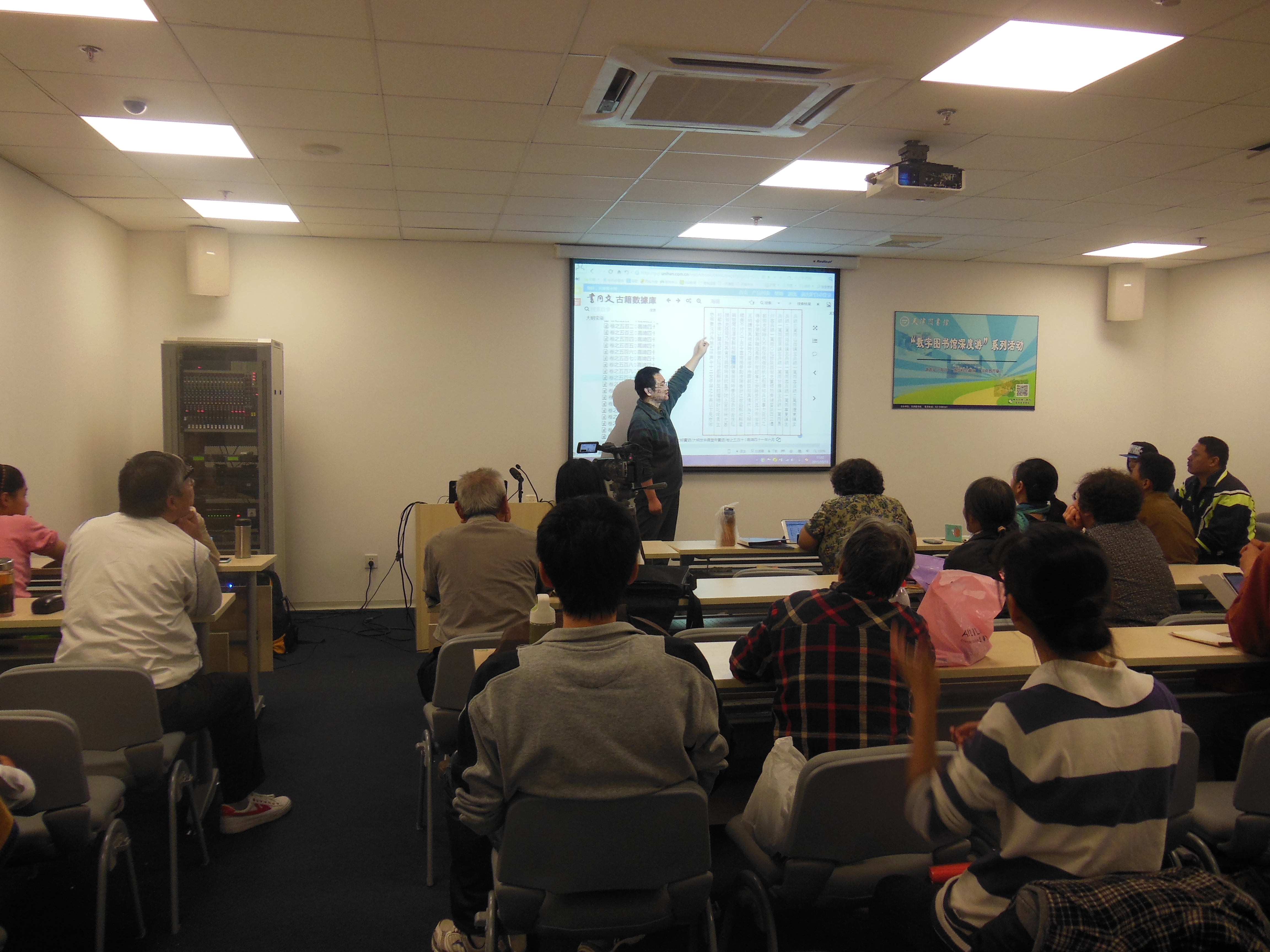 10月18日上午,天津图书馆文化中心馆四楼会议室举办了“数字图书馆深度游”系列读者培训:“爱迪科森数据库——儒道互补 华夏文明大观堂”和“触摸古籍经典,在线参与勘校”。