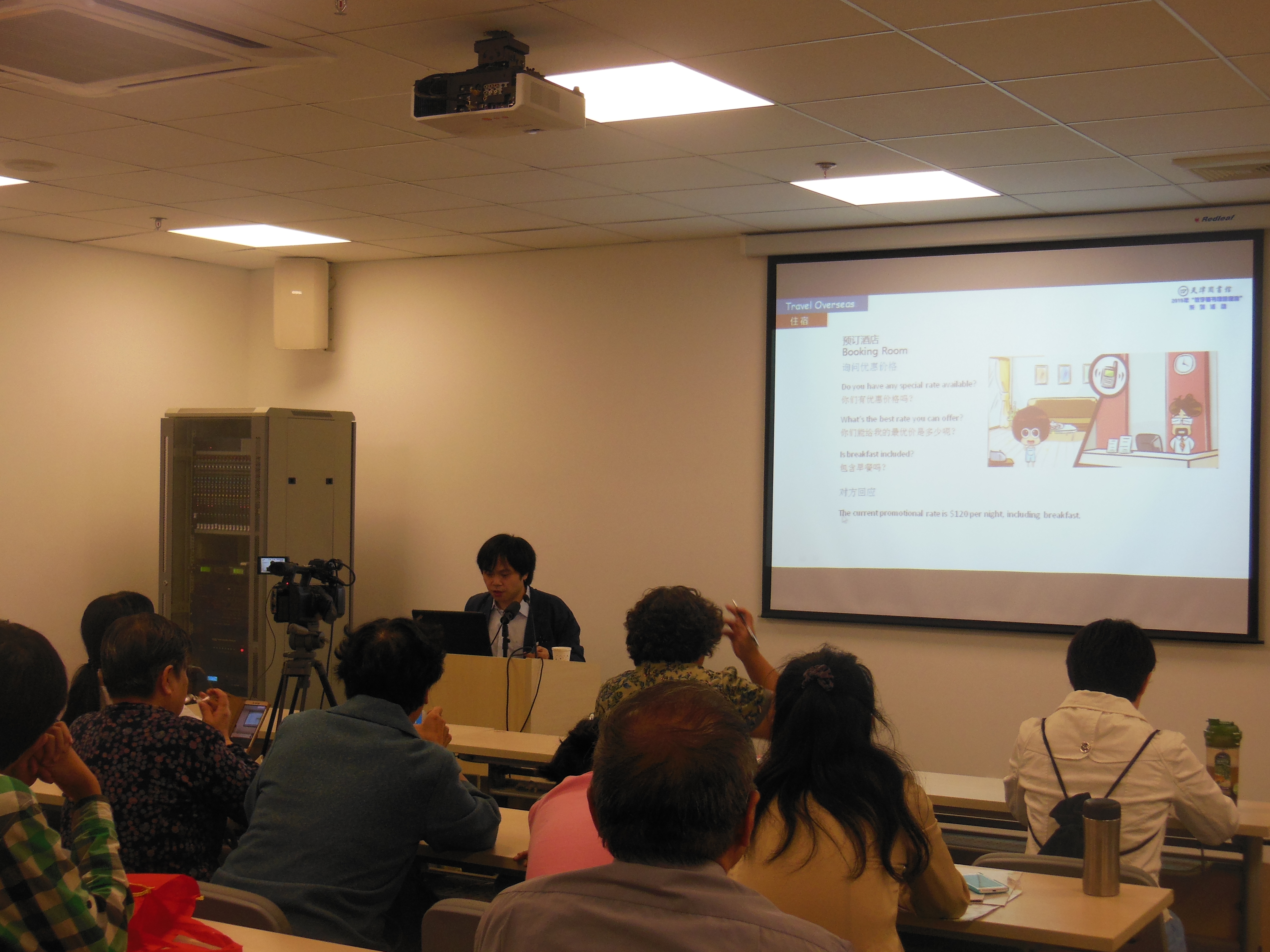 下午的讲座是由北京外研讯飞教育科技有限公司高级培训师李嘉益带来的“‘生存英语’趣谈”培训。李老师基于 “ 外研社外语资源库”,紧紧围绕“衣食住行”,向读者解读了留学海外不仅仅是一种语言的交流,更是一种文化的融入。最后,讲座在与读者互动交流中圆满结束。