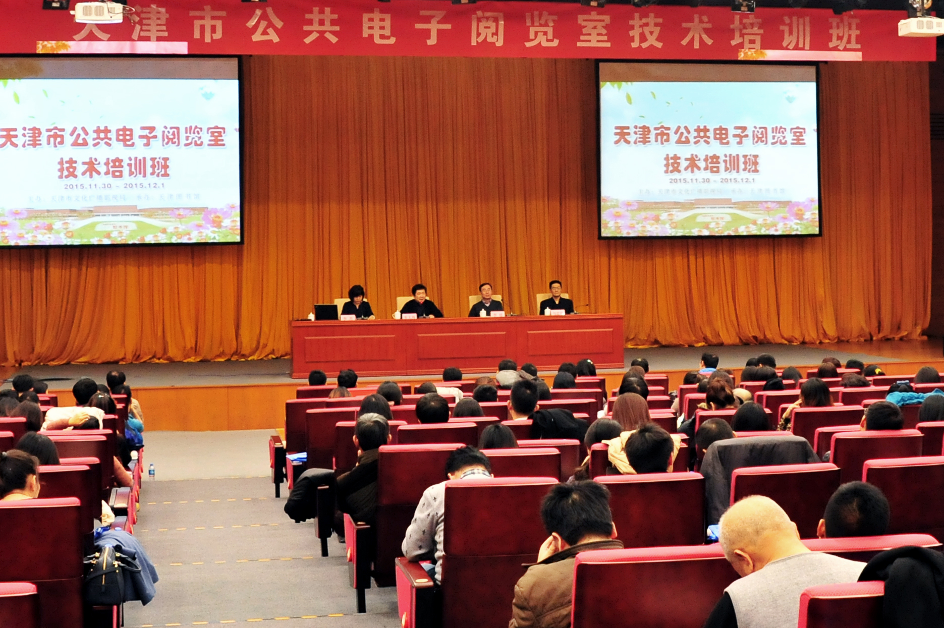 为贯彻落实《天津市“公共电子阅览室建设计划”实施方案》,切实保证惠民工程建设效果,提升我市基层公共电子阅览室管理人员技术水平,天津市文化广播影视局社会文化处、天津图书馆于2015年11月30日至12月1日在海河教育园馆区成功举办“天津市公共电子阅览室技术培训班”,来自全市各区县公共图书馆、少儿图书馆、文化馆以及各街镇综合文化站公共电子阅览室的290名技术管理人员参加了培训。