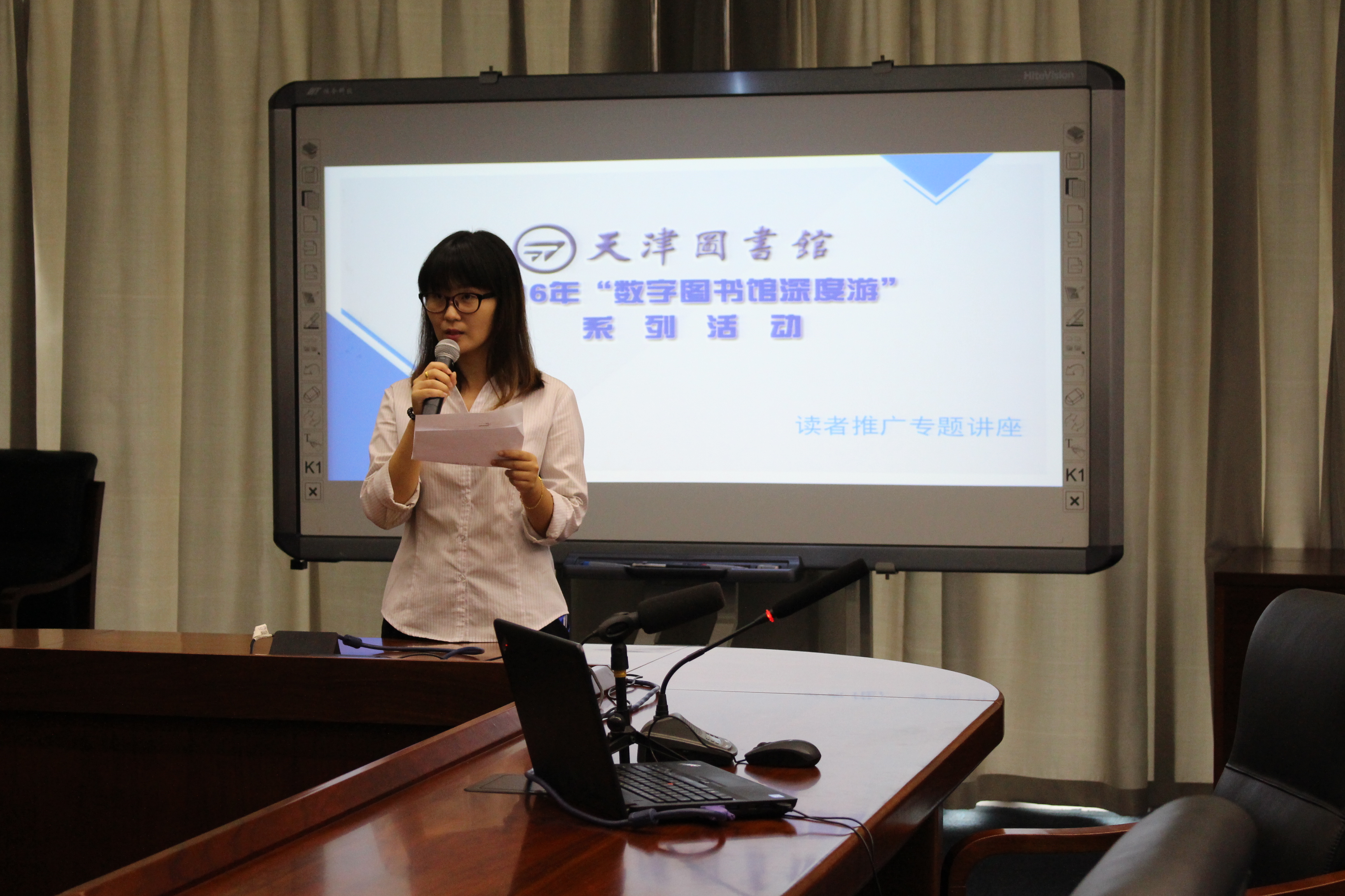 2016年7月24日下午,天津图书馆文化中心馆四楼会议室举办了“数字图书馆深度游”系列读者培训“博览群刊,看知天下——如何科学地进行户外运动”。虽然天气闷热,但这次以户外运动为主题的讲座吸引了大量年轻读者参加,活动现场气氛热烈。