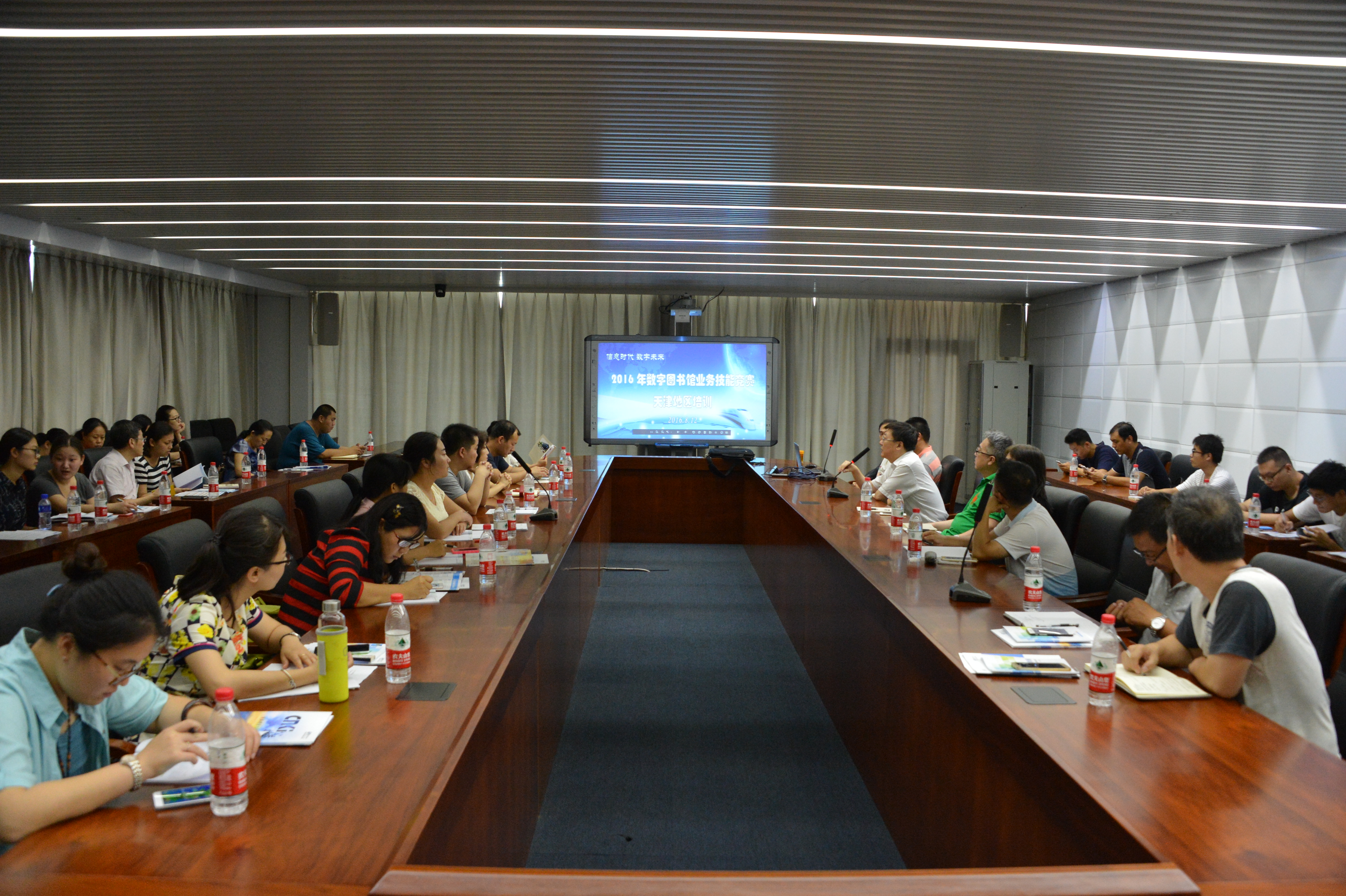 由天津市图书馆学会、数字图书馆推广工程天津分中心联合组织的“信息时代 数字未来——2016年数字图书馆业务技能竞赛”天津地区培训于2016年8月12日在天津图书馆文化中心A区四楼会议室召开。来自全市的20余个公共图书馆、少儿图书馆、高校图书馆的图书馆学会成员馆的60多位代表踊跃报名,并积极参加了此次培训。