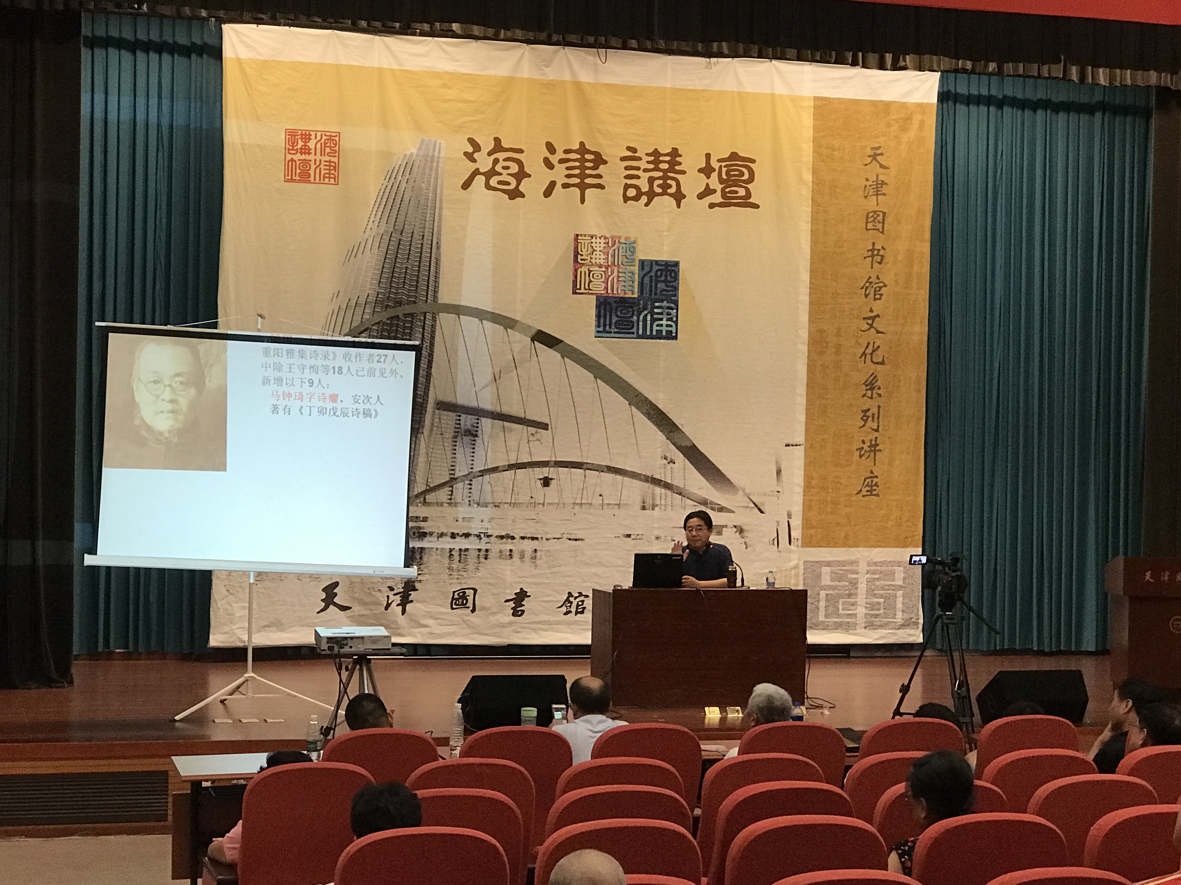 在讲座中,许振东老师用生动的语言,结合详实的图片资料,为大家详细讲述了廊坊得胜口马氏家族的文学活动与天津的渊源。许振东老师指出,长期以来,津冀两地地域相接,文化同源共生,尤其是廊坊地区更是如此。天津和廊坊两地的文人不仅地域相连,风格接近,而且相互之间的交往也密不可分。廊坊得胜口马氏家族的文风很盛,马钟琇、马诗癯均为天津城南诗社的重要成员,著有《城南诗社小传》、《味古堂集》,另有马鸿翱的《桑梓纪闻》等,均是研究津冀文化的重要史料。一个家族的文化兴盛,是和整个家族重视教育及重视家风分不开的,这既是一个地区良好民风及良好家风的真实体现,也是其深厚文化底蕴和长期贤达明德的结果。