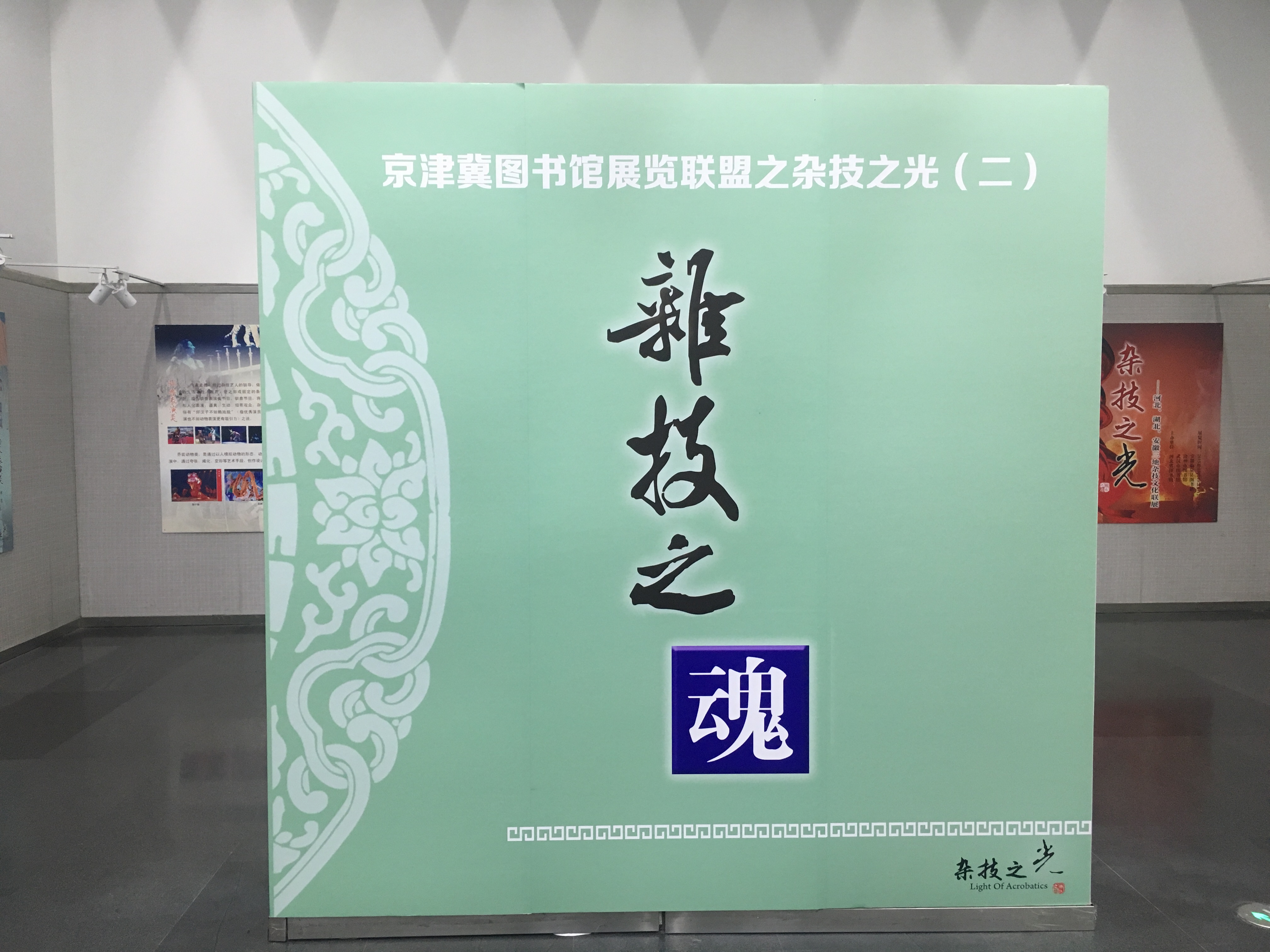 京津冀图书馆展览联盟之杂技之光展览,于2017年12月19日在天津图书馆文化中心馆区一楼展厅拉开帷幕。本次展览分为上下两期,从杂技之源、杂技之魂、杂技之乡和杂技之赛四个主题,展现河北、湖北、安徽三地自古至今深远浓厚的杂技文化艺术,供读者赏阅。