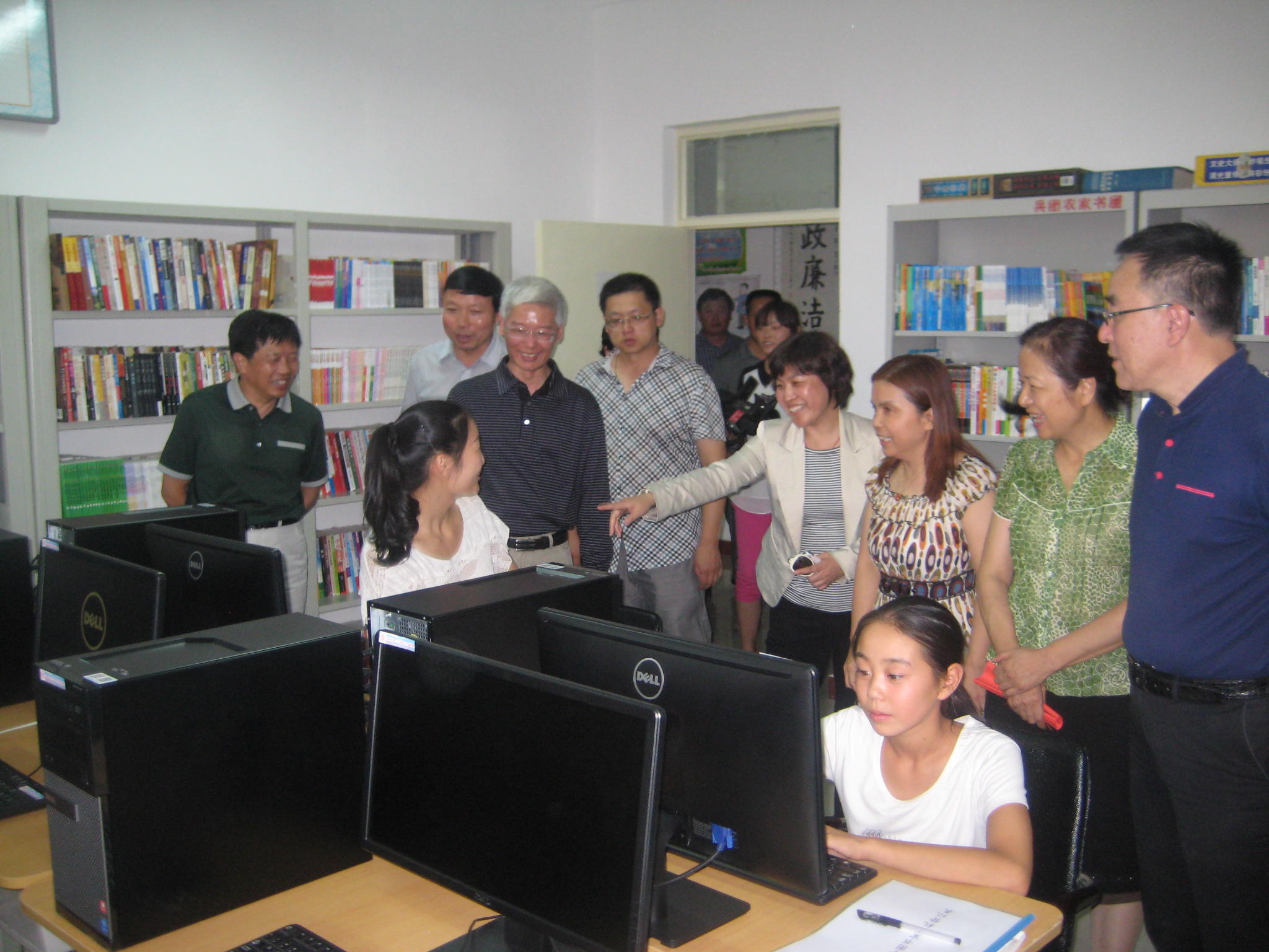8月21日、22日,在兵团第九师新闻中心和第七师137团文化站,天津市文广局副局长金永伟、九师党委常委副政委蒲福明、七师党委常委副政委景建英、兵团文广局新闻处处长黄晓虎以及九师宣传部、137团党委领导同志共同为“天津图书馆兵团九师分馆”、“天津市少年儿童图书馆兵团九师分馆”“天津图书馆兵团一三七团分馆”及“天津市少年儿童图书馆兵团一三七团分馆”揭牌。金永伟副局长代表天津市文广局分别向每个分馆赠送十台电脑,并接受了九师和七师向天津市文广局赠送的锦旗。