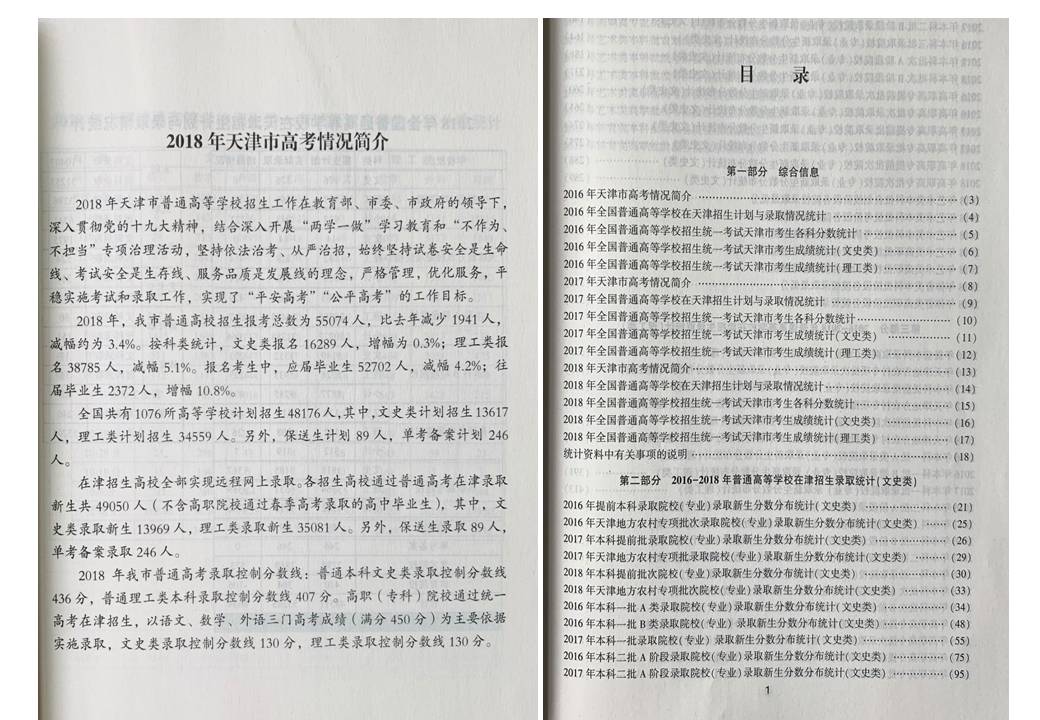 2019年高考已经顺利结束,莘莘学子又面临一项新的挑战——填报志愿。这对于家长们和考生们都是一件很重要的事情。如何填报志愿?各大院校往年在津录取情况如何?心仪的高校往年的录取分数是多少?这些都是报考时家长和学生们需要了解的信息。为更好的向广大考生及家长们提供服务与帮助,天津图书馆现已上架《普通高校在津招生录取统计资料(2016—2018)》一书。本书汇集3年高校在津录取统计数据,为准确填报志愿提供数据支持,是高考填报必备指南。 本书即将于6月21日正式发行,现在带大家先睹为快。