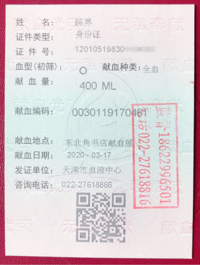 疫情防控期间,我市采血量骤降,保障性库存持续下降,临床用血出现紧张。看到市血液中心号召无偿献血的新闻后,人事教育部陈界同志利用休息日时间,来到东北角献血屋主动捐献400毫升血液。