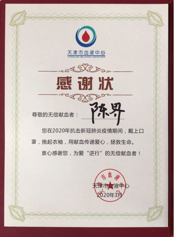当询问他为何想到去献血时,他说:在防疫抗疫的关键时刻,作为一名共产党员,想通过献血的方式为社会做一点贡献。比起疫情期间逆向而行的白衣战士们,这就是一件普通的小事。