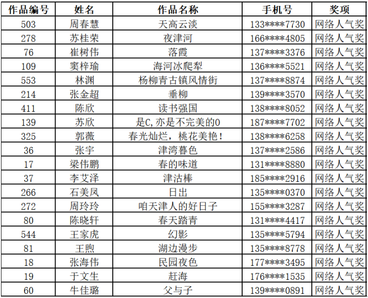 网络人气奖20,颁发荣誉证书及活动纪念品。