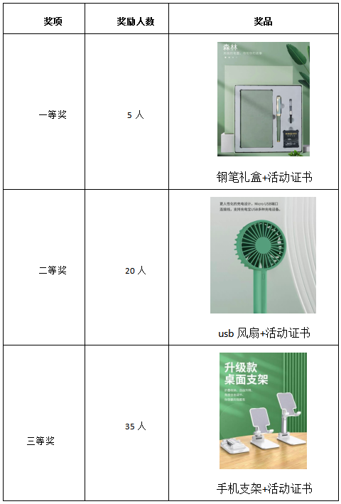 2、根据排名确定前60名获奖者,按成绩排名赠予相应精美礼品及活动证书各一份。