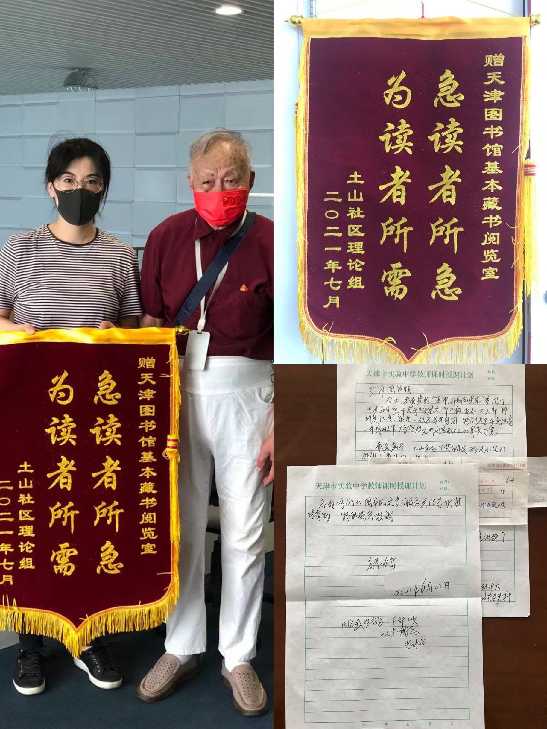 在中国共产党建党100周年当日,收到读者的致谢锦旗,是对天津图书馆工作的肯定,更是一份极大地鼓舞!用心学党史,真心办实事。天津图书馆将结合党史学习教育,不断创新读者服务模式,提升读者服务质量,为读者提供更加热情周到、耐心细致的服务,真正把“为群众办实事”工作落到实处。