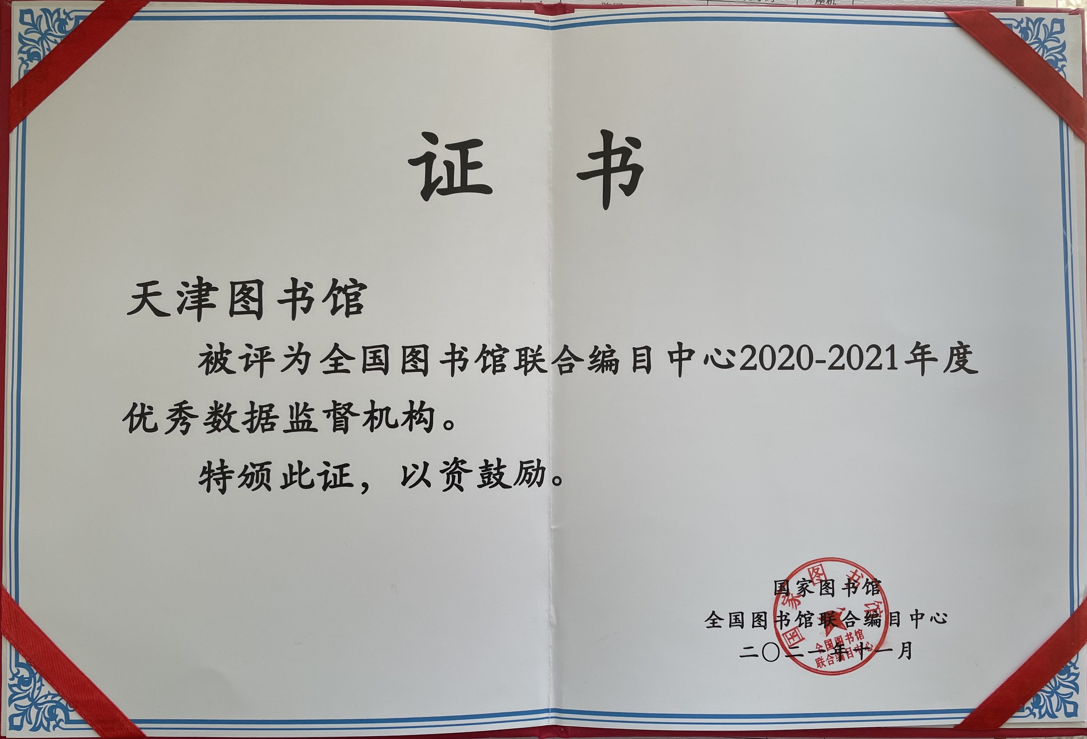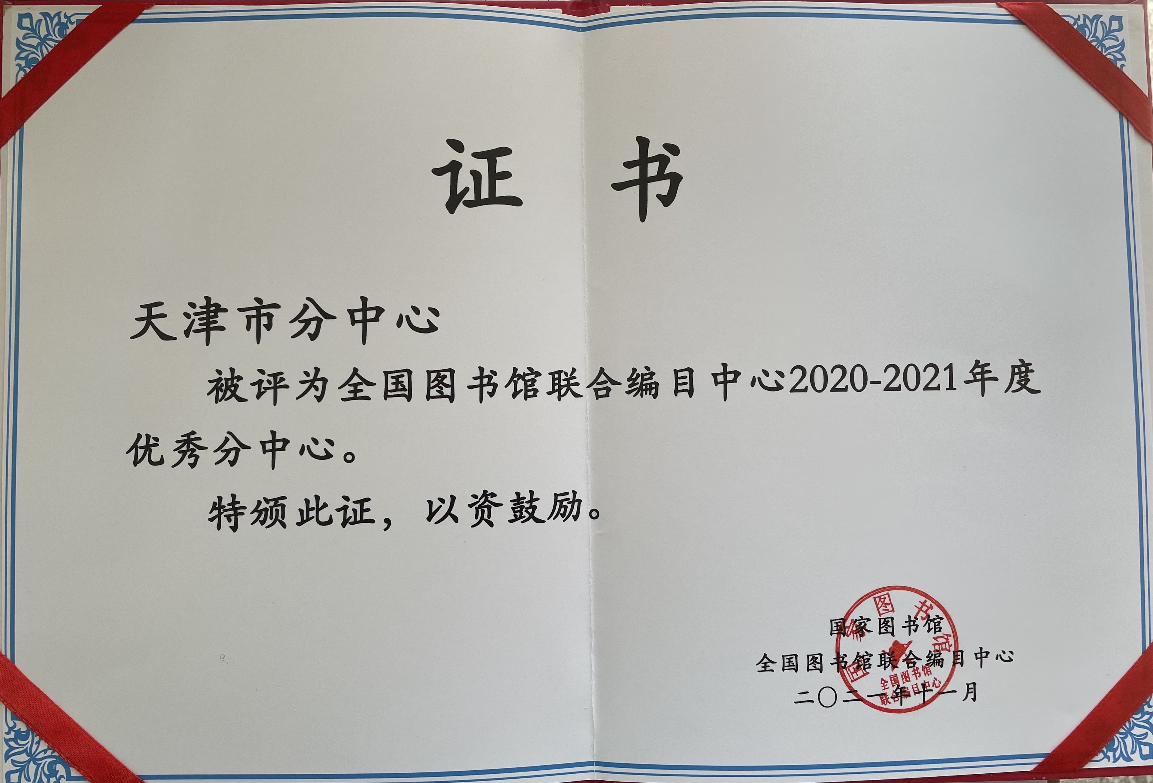 天津图书馆(天津市少年儿童图书馆)喜获全国图书馆联合编目中心“优秀分中心”等奖项