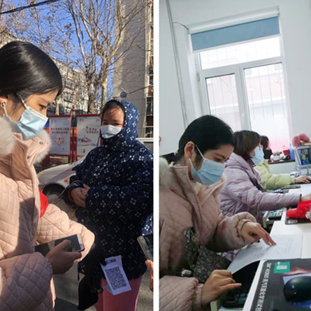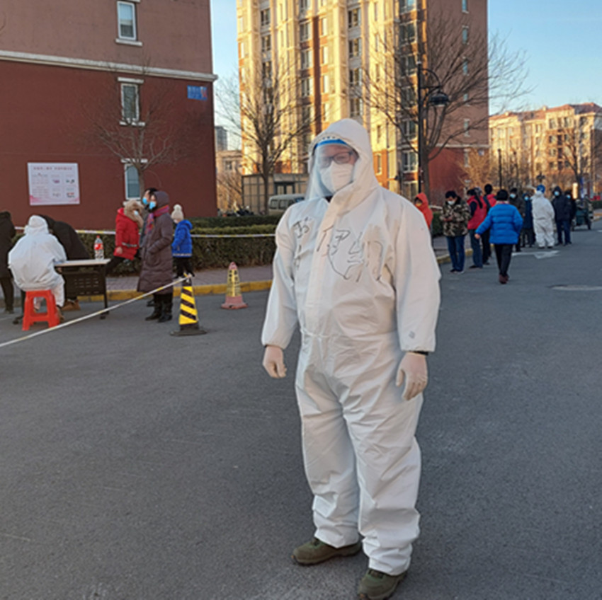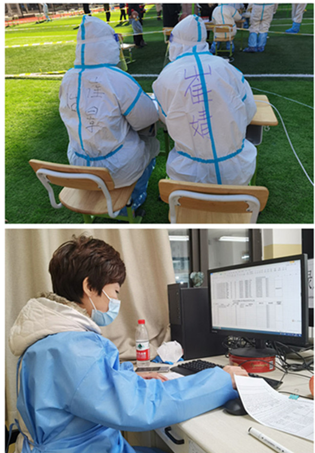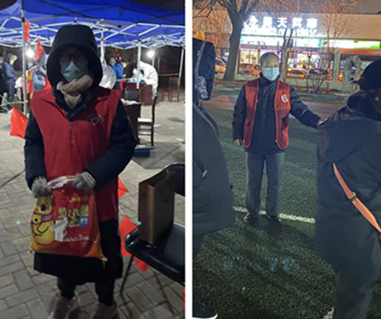 图2.安全保障部职工崔婧身处管控区,疫情发生后她主动到社区报到参加志愿服务,登记居民核酸检测信息,休息取暖时协助社区工作人员录入上传资料,全程参与了三轮大筛任务。