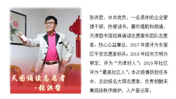 篇章简介:天津图书馆志愿者不仅为公共文化服务事业倾情奉献,在迎战疫情的关键时刻,他们更是挺身而出,奋勇向前,用大爱为生命护航。