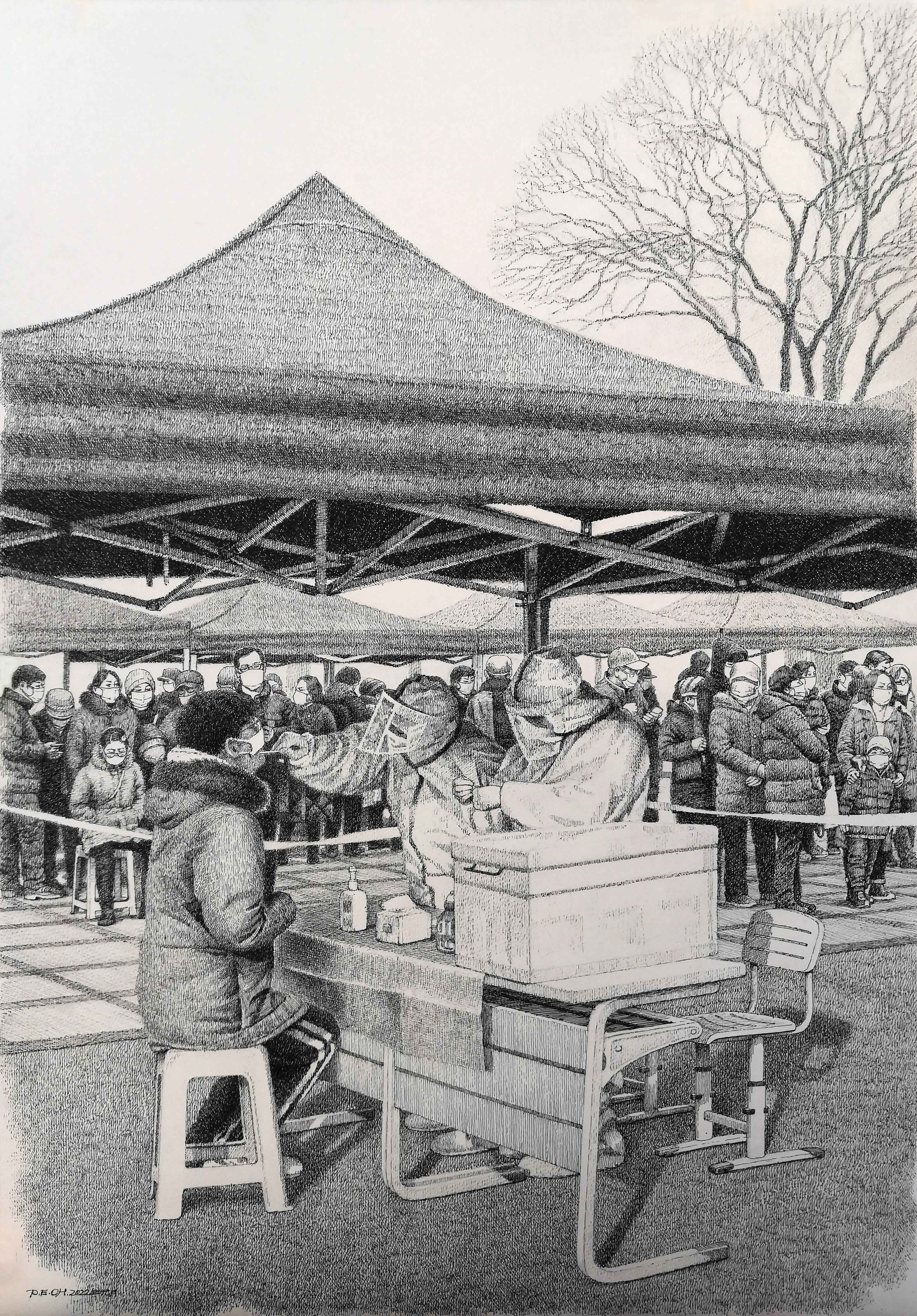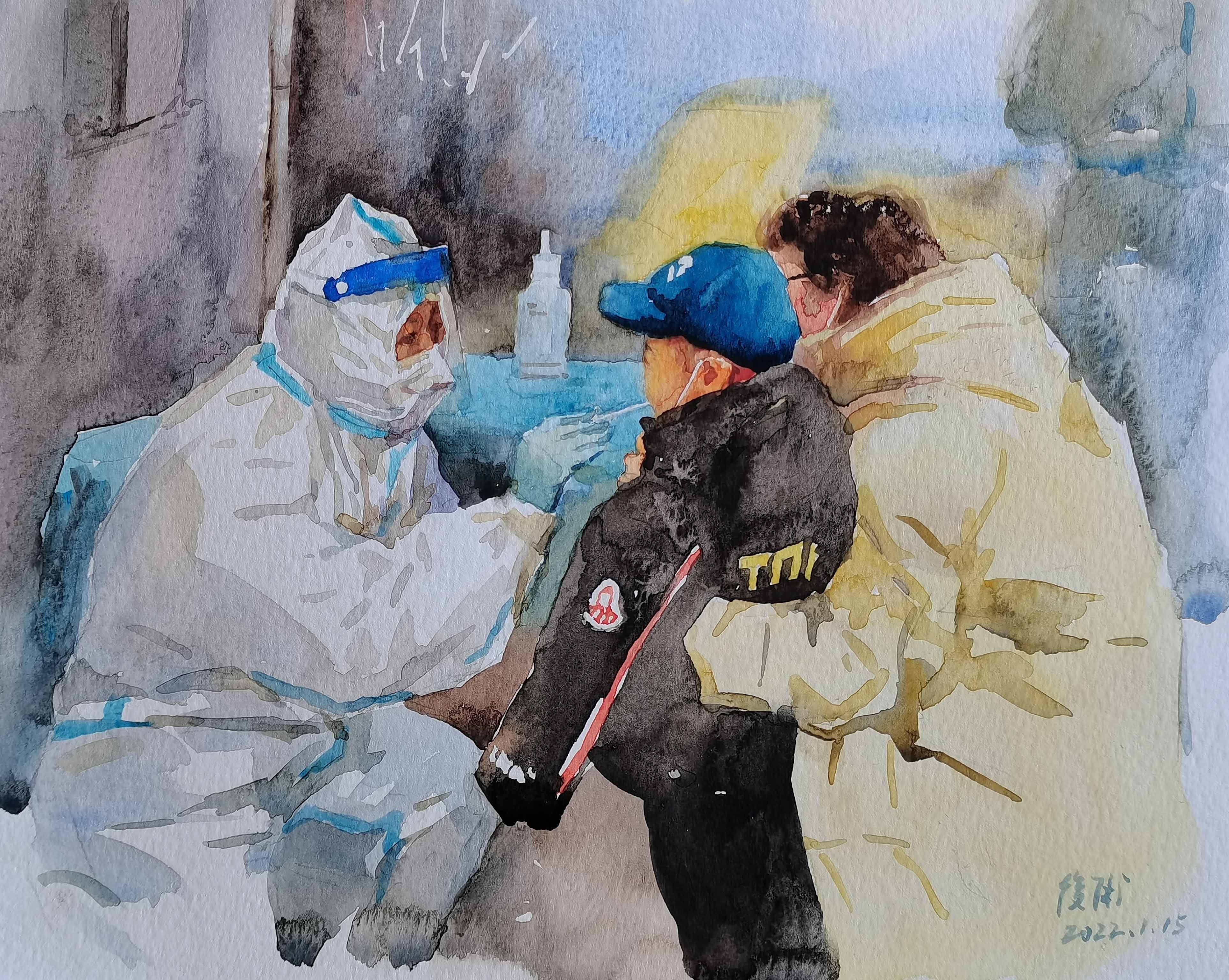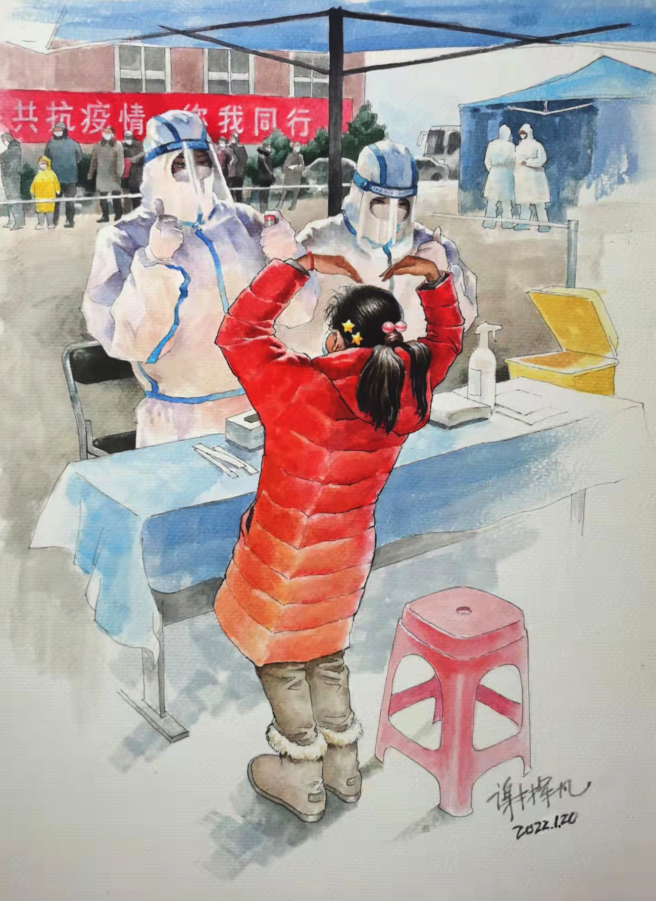 年关前,疫情再起,一个个病例,牵动着全国人民的心,这次是我的家乡,就在我的身边。然越是艰难险阻,越见人民力量之磅礴,越见布衣之下的坚毅与热忱。隆冬里的每一次核酸筛查,排起的长队中,妈妈给孩子拉紧了衣服,相识的邻居们搓着手点头问候。可大家没有慌乱的神色,只有笃定的信念;没有抱怨之声,只有无私的奉献。严密的口罩上方是一双双带有血丝的眼睛,厚重的防护服下也是布衣青衫,他们似点点微光,撕破暗夜一角,接力汇聚成璀璨的星河,照亮着前行的方向。人们说:“等等吧,冬天就要过去了,春天就要到来。”