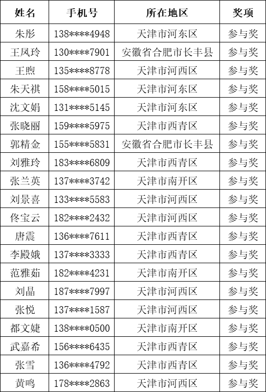参与奖20名: