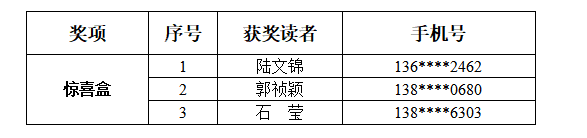 1、获奖者请携带本人身份证及参加活动时预留的手机号领奖;代替他人领奖者需同时携带获奖者和本人的身份证,并提供获奖者手机号方可领奖。
