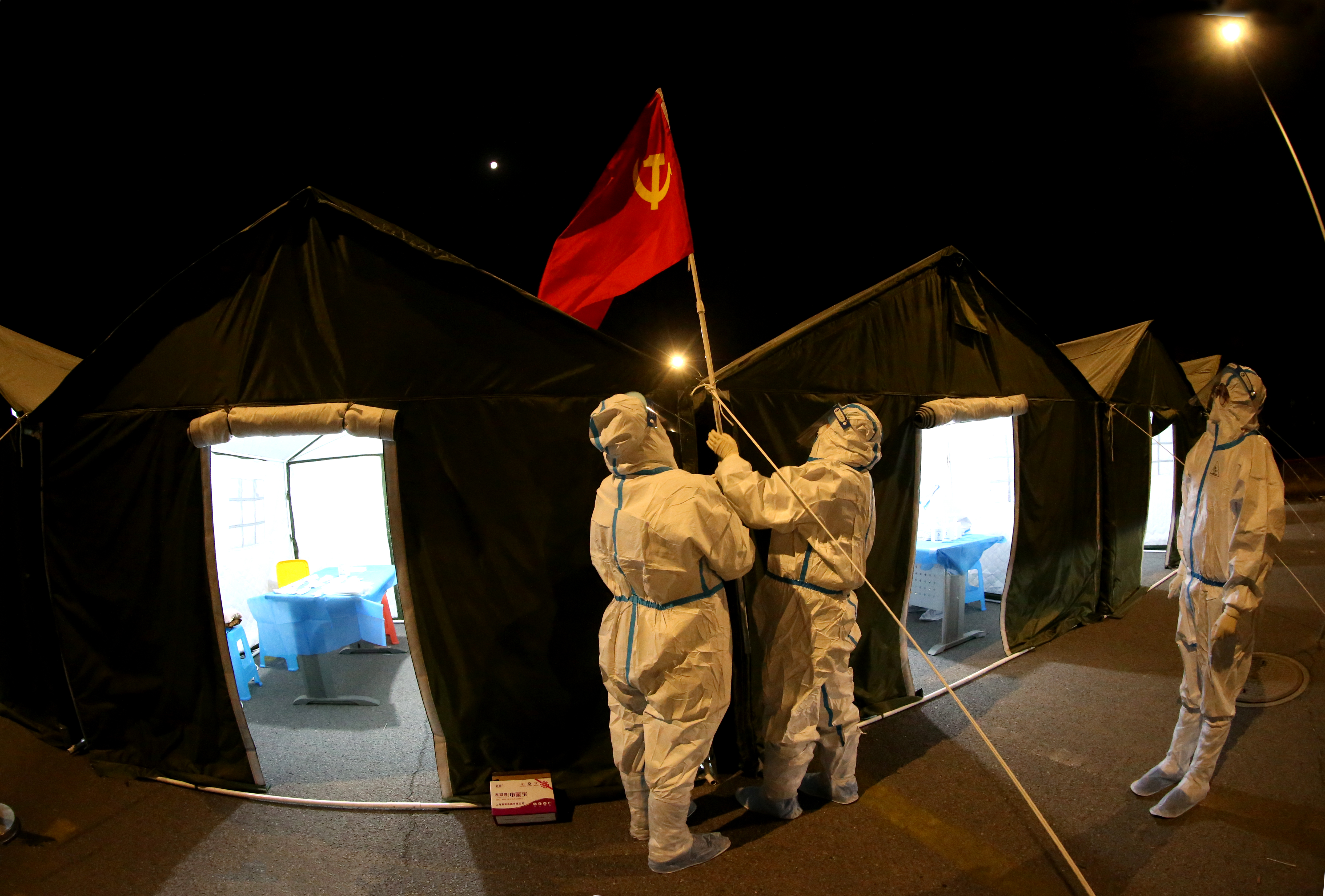 夜晚,如水的月光陪伴着下沉社区人员疲惫的身影