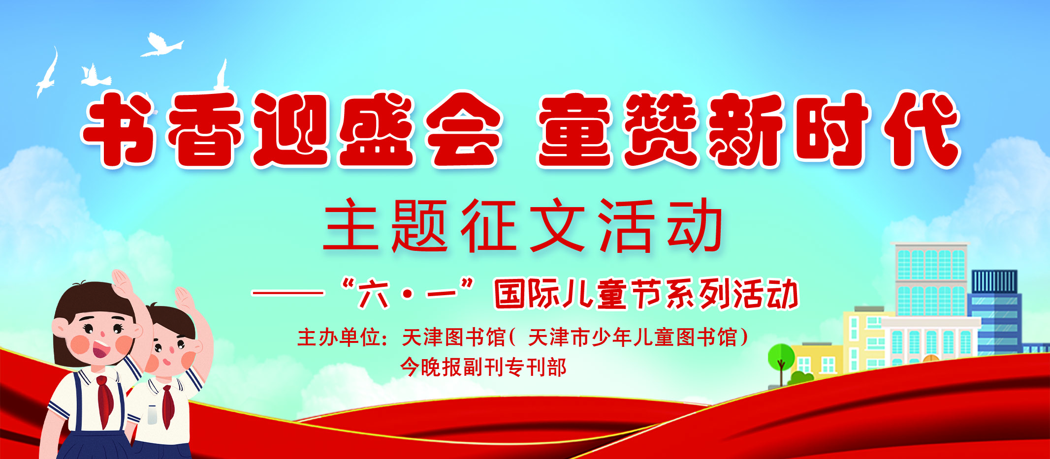 2022年是党的二十大召开之年,是中国共青团成立100周年,也是实施“十四五”规划开启全面建设社会主义现代化国家新征程的重要一年。少年强则国强,童心共筑中国梦,当代少年儿童不仅是新时代亲历见证者,更是全程参与者。为讴歌新时代,进一步激发少年儿童的阅读写作兴趣,在“六一”国际儿童节到来之际,天津图书馆(天津市少年儿童图书馆)携手《今晚报》副刊专刊部开展“书香迎盛会 童赞新时代”主题征文活动,旨在通过讴歌家乡新变化、身边的榜样人物,发现新成就,感知新时代,在阅读写作中培养少年儿童对党、对祖国、对家乡的真挚情感。