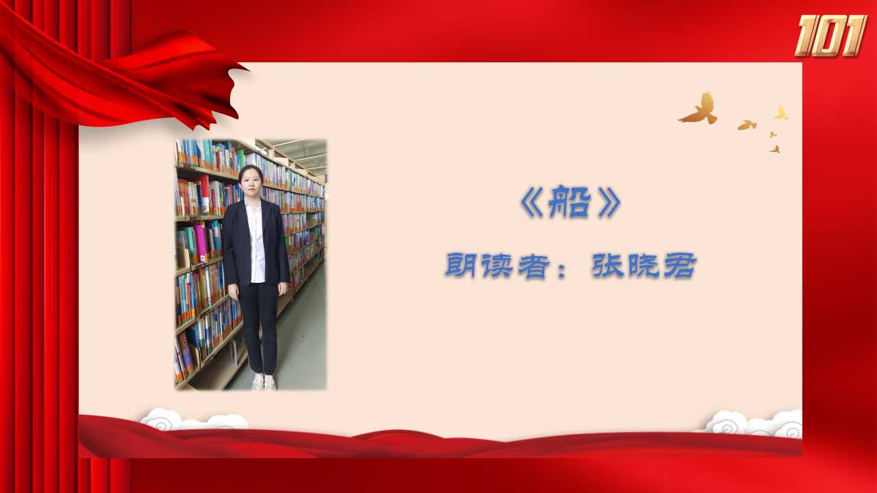 为庆祝建党101周年,天津图书馆于 “七一”前推出“最美的祝福献给您”诵读作品征集展示活动,活动收到了来自社会各界读者的热情投稿。在前两期的作品展示中,我们一起在朗读中传递信仰、牢记初心,于朗诵中聆听故事、回味经典。本期为诵读作品展示最后一期,让我们继续诵读红色经典,重温光辉历史,抒发爱国情感,致敬伟大的中国共产党。