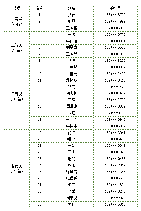 本次活动共吸引515人参与答题,系统根据答题正确率和答题时间自动排名,前30名参赛者获奖。现将获奖名单公布如下。