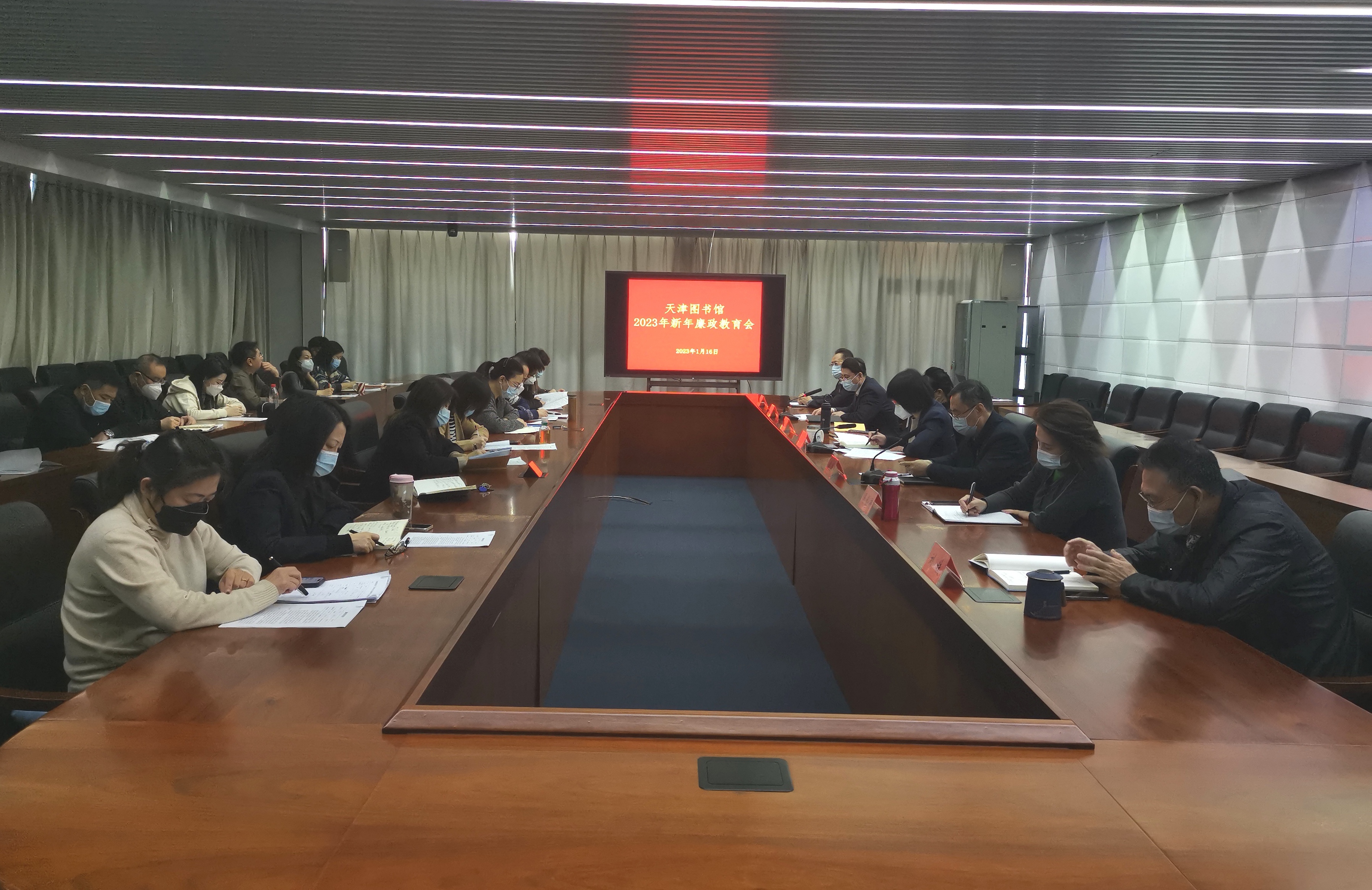为深入学习贯彻党的二十大精神,锲而不舍落实中央八项规定精神,持续深化纠治“四风”,强化全面从严治党主体责任,1月16日上午,天津图书馆召开2023年新年廉政教育会。会议由馆党委副书记、馆长李培同志主持,馆党委书记王青同志讲话,馆领导班子成员、全体中层干部、各支部书记参加会议。