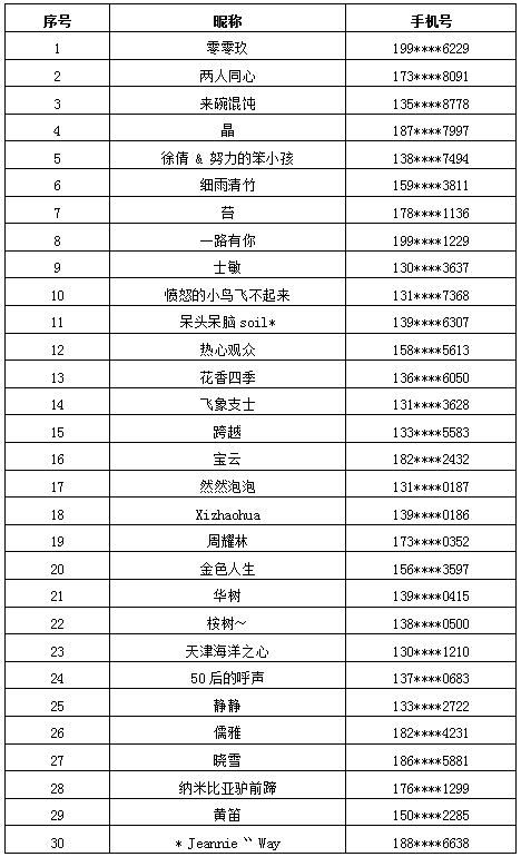 按照活动规则,获奖者以答题得分成绩排序,答题得分相同者,按答题时长排序,答题用时较短者排名领先,成绩排行榜前30名的读者获奖。现将获奖名单公示如下: