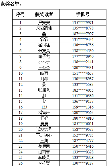 1、获奖者请携带本人身份证及参加活动时预留的手机号领奖;代替他人领奖者需同时携带获奖者和本人的身份证,并提供获奖者手机号方可领奖。