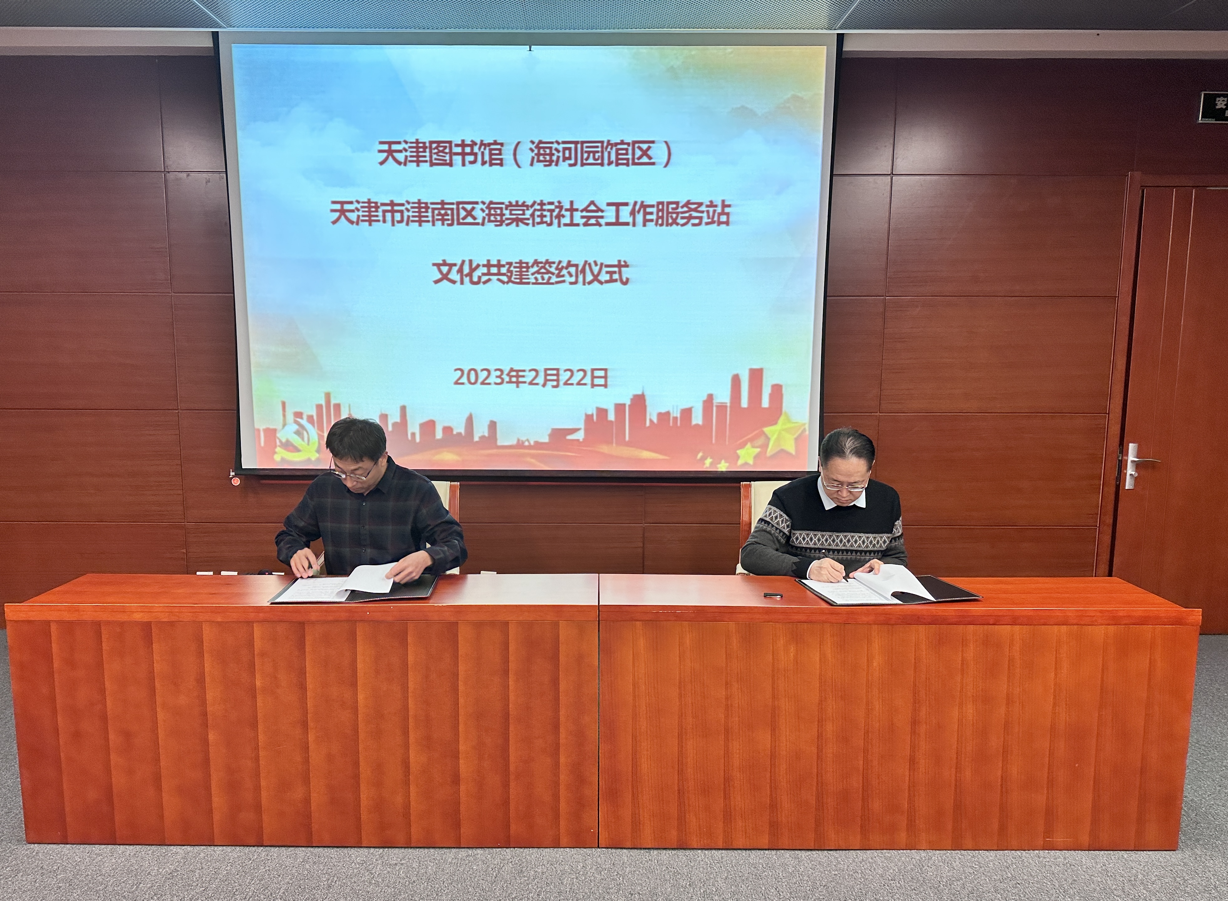 携手聚力,共谋新篇天津图书馆海河园馆区与天津市津南区海棠街社工站举行文化共建签约仪式