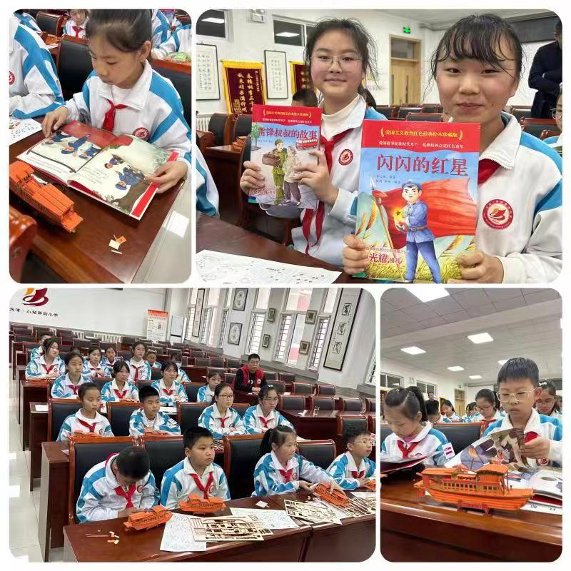 随后,志愿者们来到津南区小站第四小学活动室,和孩子们开展图书共读会活动,手把手教孩子们制作“红船”拼图,讲解“红船精神”的由来,同时与孩子们共同阅读相关书籍、分享读书心得,在潜移默化中帮助孩子们培养良好的阅读习惯,涵养爱党爱国情怀。“今天的读书会满足了我的阅读小心愿,以后我要多学习书中的知识,成为国家有用之才。”小站四小学生郑熙蕊开心地说。