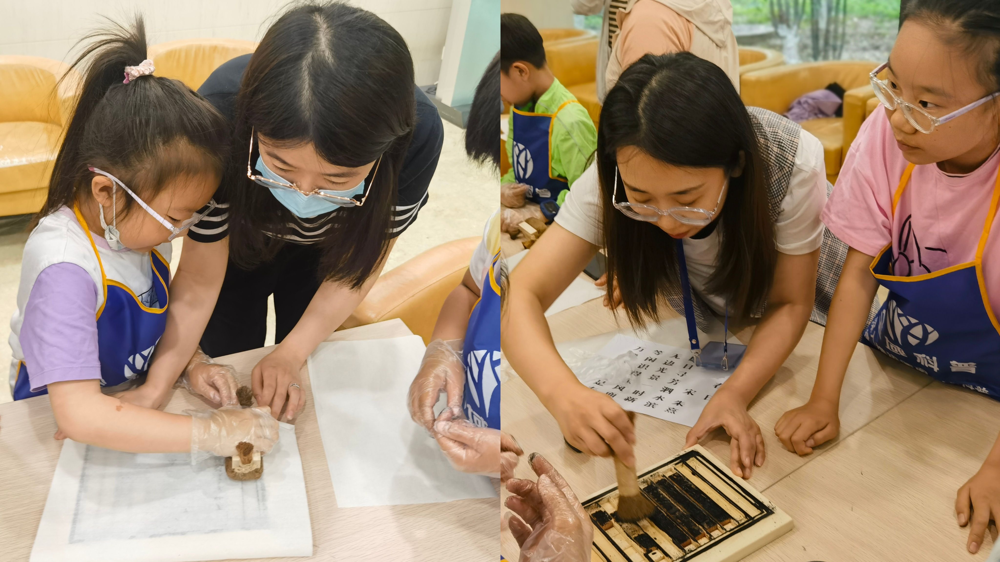 随着老师耐心的讲解和演示,在观看了活字印刷技艺的整个流程后,孩子们准备好纸,开始了“活字印刷”的体验之旅。