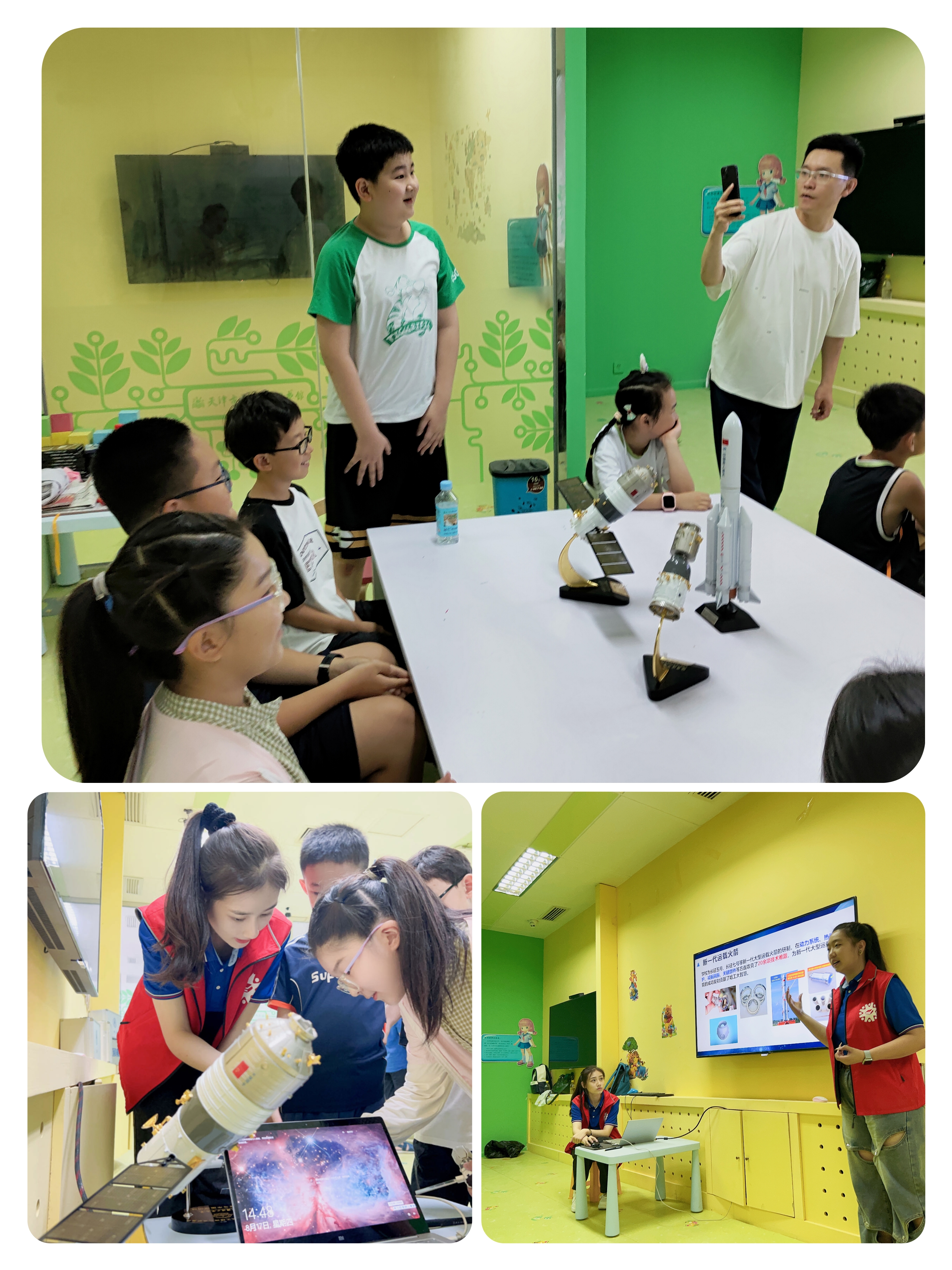 国之重器探苍穹,星辰可摘觉天低。8月17日下午以“探索航天重器”为主题的天津图书馆格物课堂(第3期)在复康路馆区少儿借阅区成功举办。为丰富活动内容提升服务质量,本次活动联合哈尔滨工业大学“满天星”科普宣讲团,以志愿服务的形式,为小朋友们带来了一场别开生面的线下暑期活动。