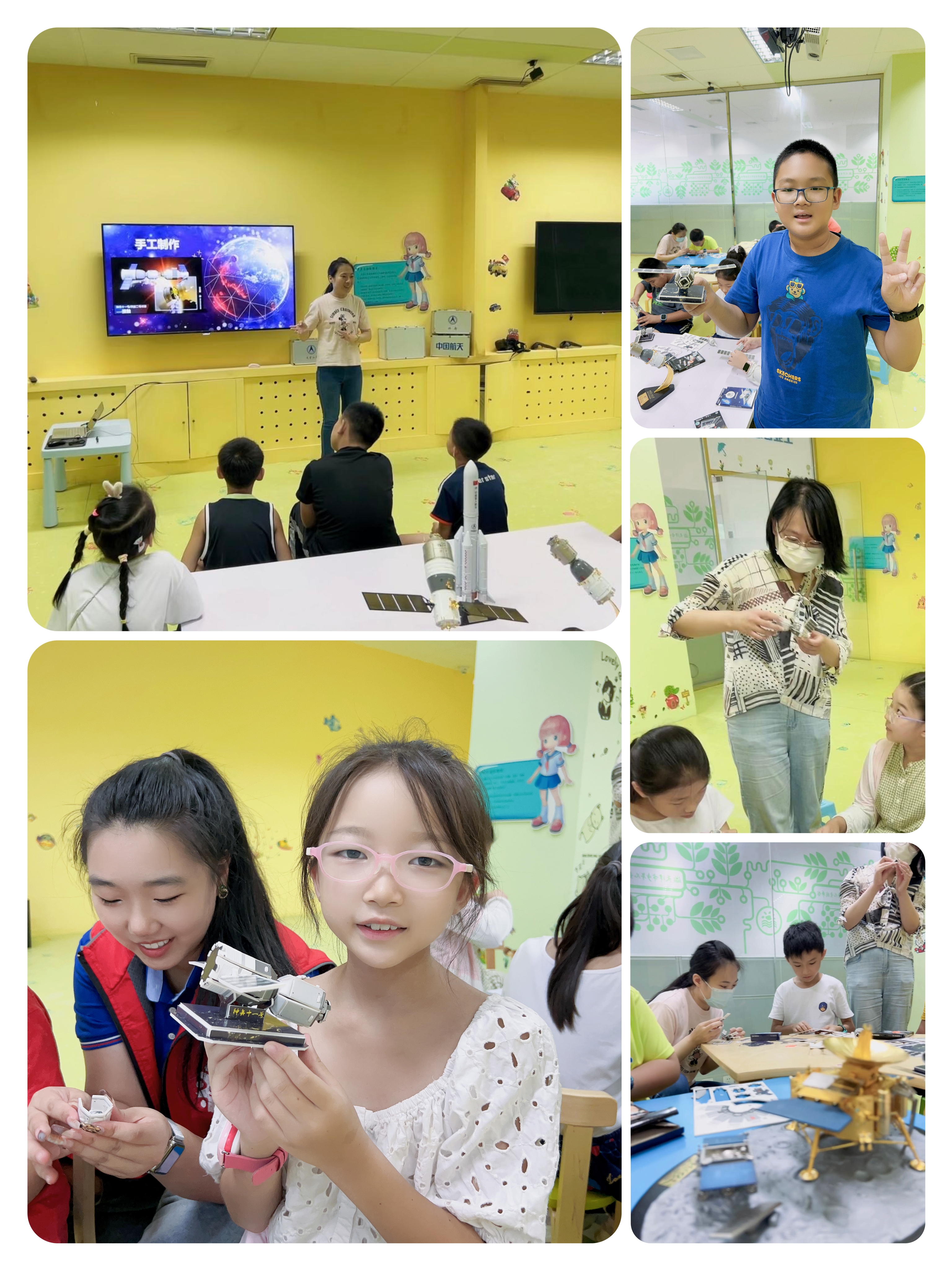 最后,在天津图书馆工作人员的讲解和帮助下,小朋友们制作了属于自己的“神州十一号”载人飞船和“天宫二号”空间站模型,模拟实现了“对接”任务。活动在小朋友们意犹未尽的探索中落下帷幕。