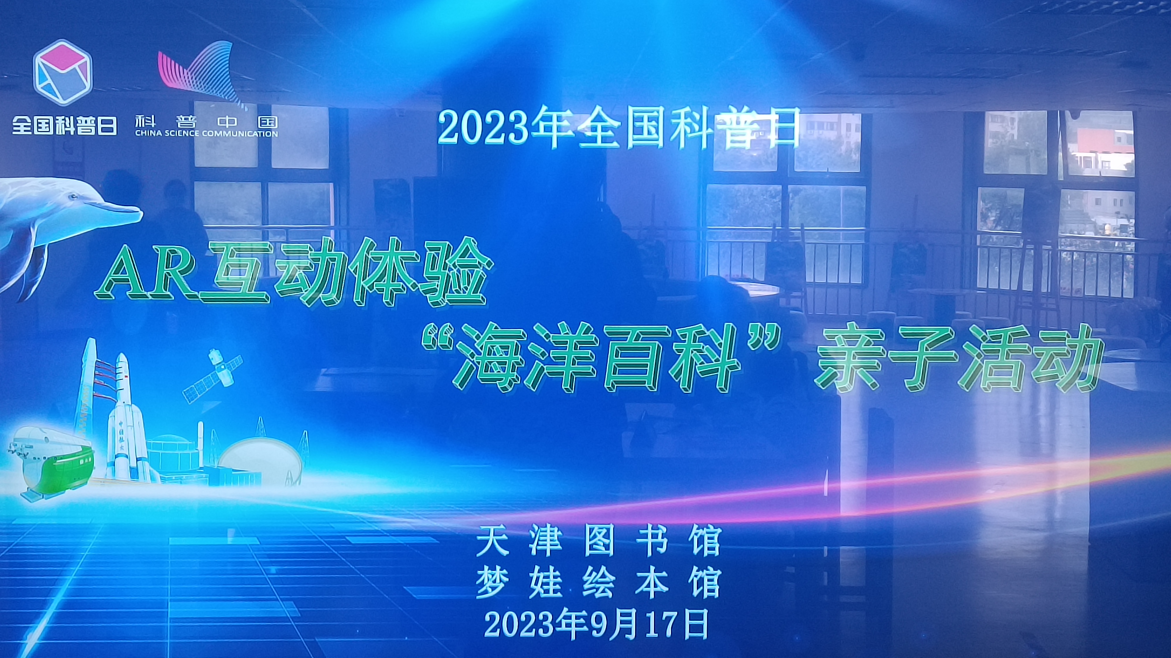 在全国科普日来临之际,为充分发挥天津图书馆科普基地作用和社会教育职能,引导小读者探索海洋的奥秘,9月17日上午,天津图书馆在梦娃绘本馆开展了AR互动体验“海洋百科”亲子活动,现场吸引了来馆阅读的25组家庭参加活动。