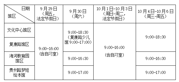 自10月4日(周三)起,复康路少儿馆开放时间延长至18:30。