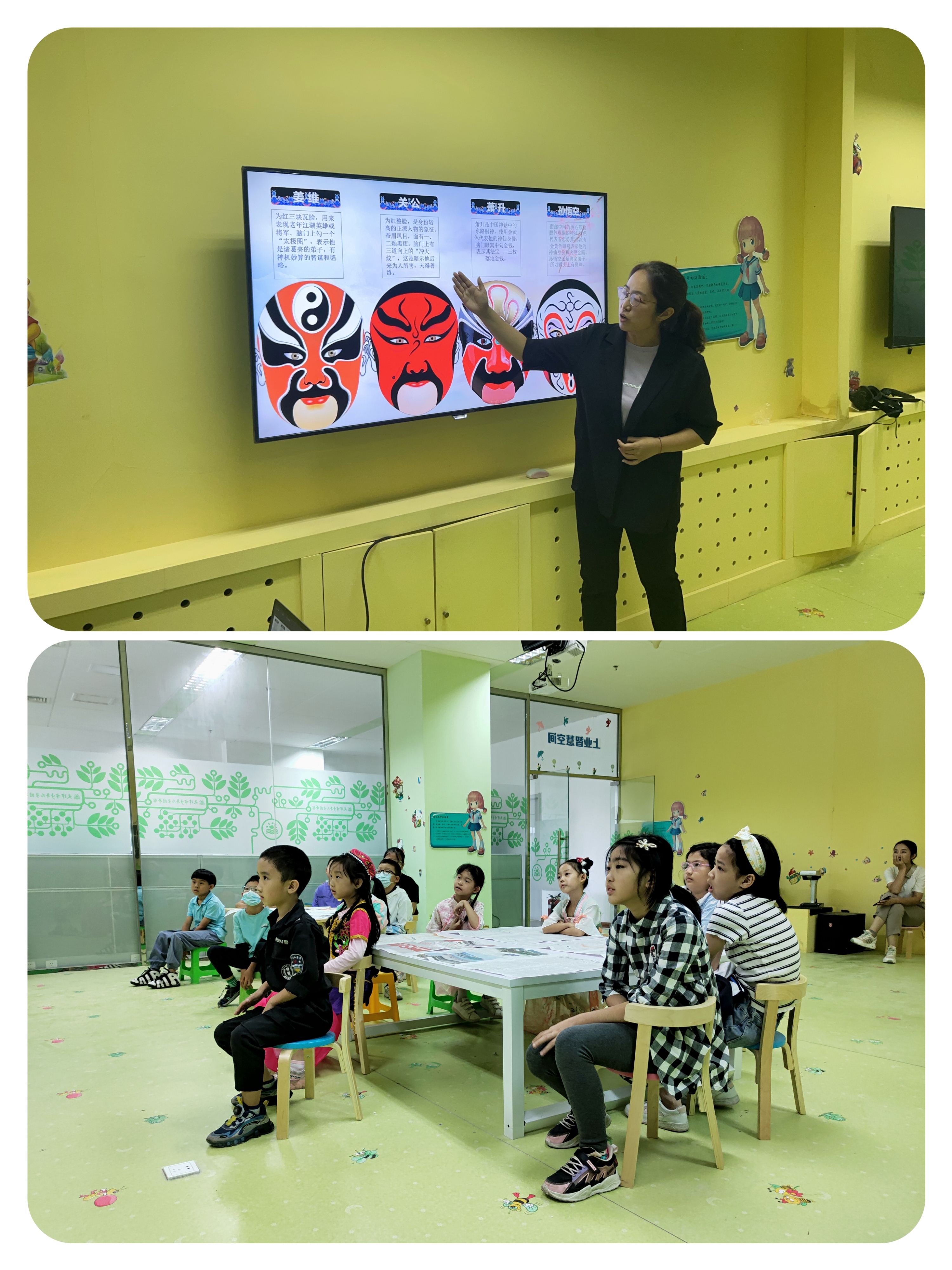 活动开始,馆员老师为小朋友们简单介绍了京剧文化背景、剧种起源及演出形式,让小朋友们对京剧有了初步了解。当讲解到行当与脸谱时,小朋友们对不同颜色脸谱能够展现出不同人物性格表现出极大的兴趣,从而加深了对京剧脸谱中各种色彩内涵的认识。