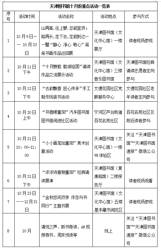 近期活动|金秋十月,天津图书馆邀您共沐书香