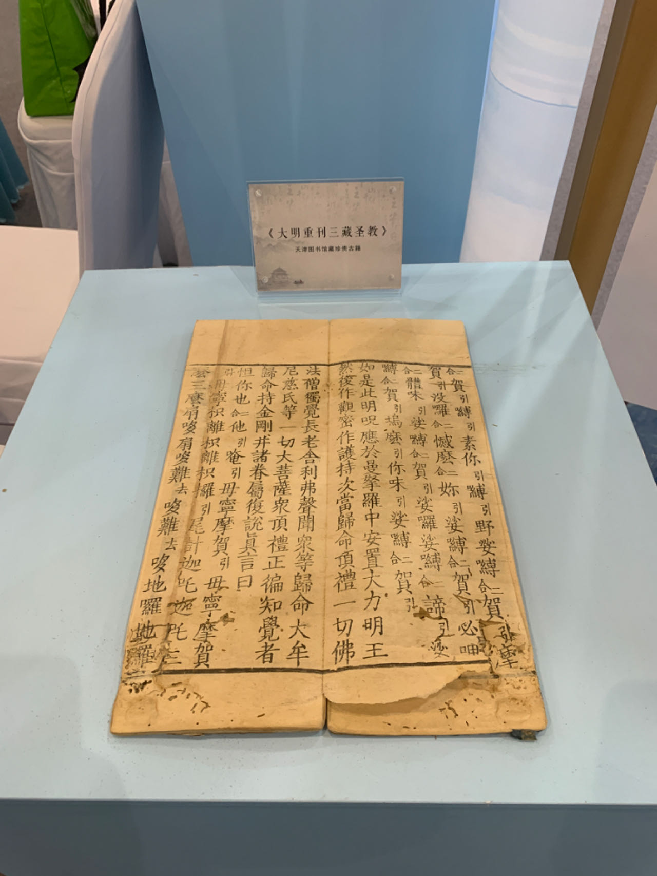 此次我馆展出的藏品为《大明重刊三藏圣教》一册,为南京徐筠泉家重刻本,珍稀程度仅次于宋元藏经,在我国印刷史和佛学研究方面具有非常重要的价值,为我馆馆藏镇库之宝。《大明重刊三藏圣教》的展出,让读者在观看古籍修复技艺的同时,亦能欣赏古籍藏书之美。