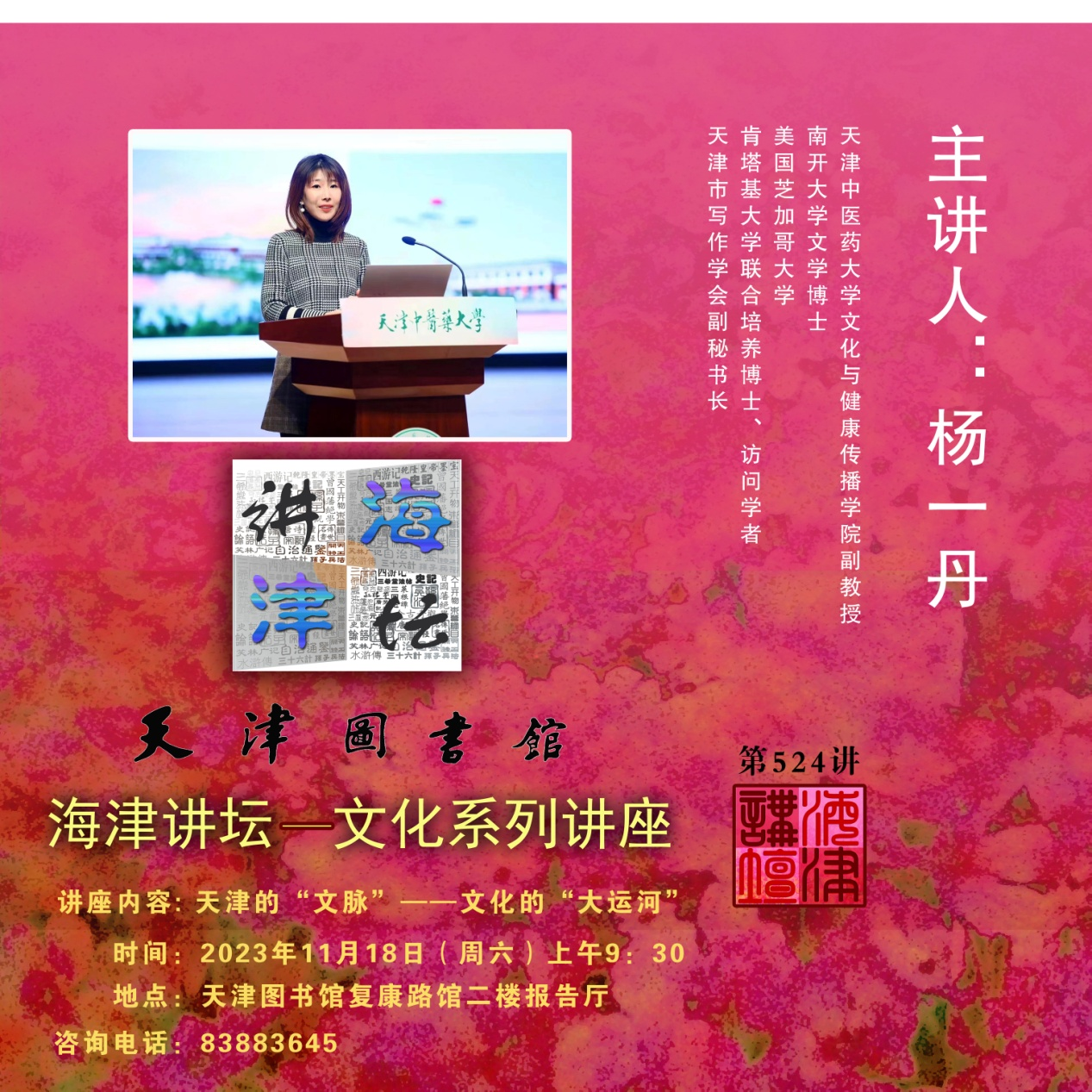 《海津讲坛》第524期《天津的“文脉”——文化的“大运河”》讲座预告