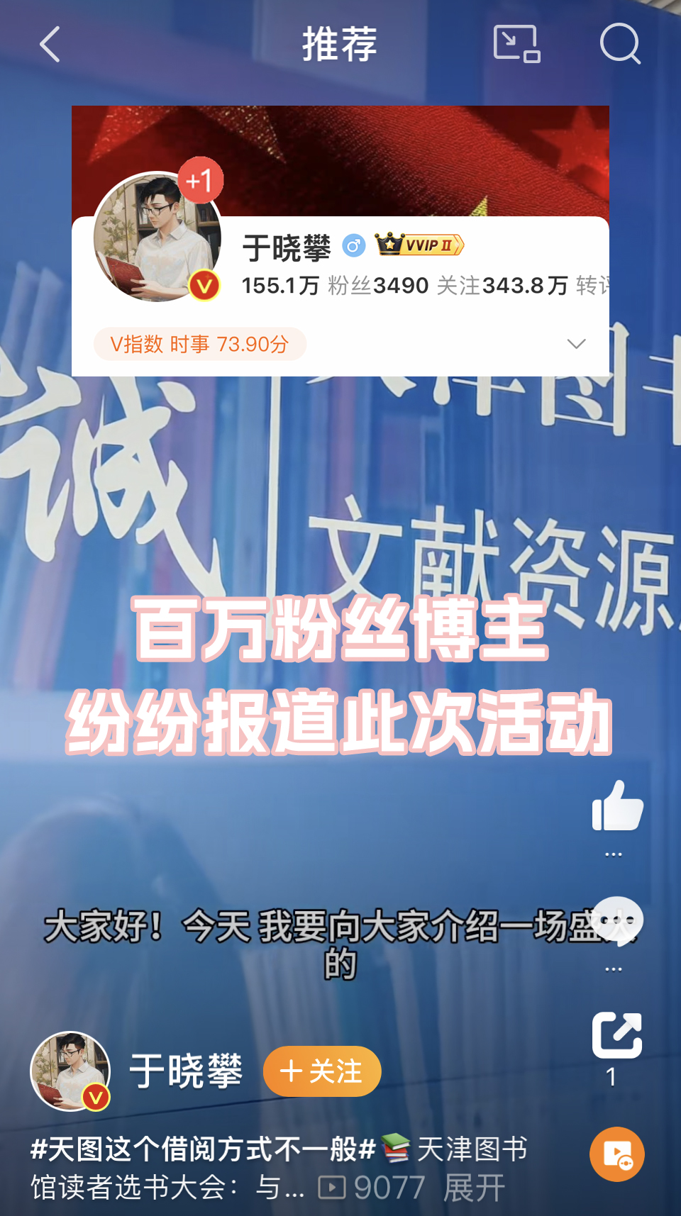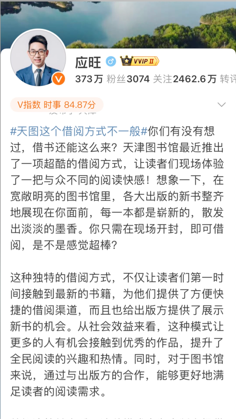 天津图书馆始终在为读者提供高品质公共文化服务中不断探索,高标准、严要求,以优质阅读内容不断提升读者文化获得感、满足感。涵育阅读风尚,助力推进全民阅读,为推动天津市文化和旅游融合发展发挥应有的作用。实干奋发,守正创新,以实际行动为推动天津市“十项行动”贡献图书馆力量。
