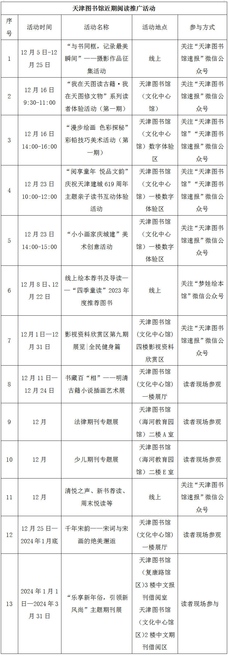 近期活动 ︳天津图书馆精彩活动等你来解锁!发布时间:2023-12-13