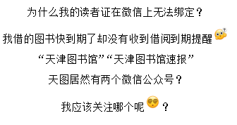 问题一:在微信上搜“天津图书馆”公众号,为什么有“天津图书馆”和“天津图书馆速报”两个公众号?我该关注哪个呢?