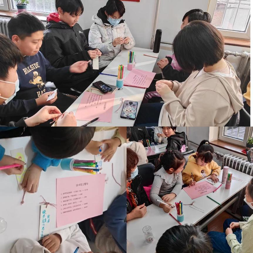 在动手环节,馆员石静、冯景萍带领小朋友制作了节气书签,并书写了关于读书的名言、自己的座右铭等。最后,小朋友和家长合影留念,活动在意犹未尽中落下帷幕。