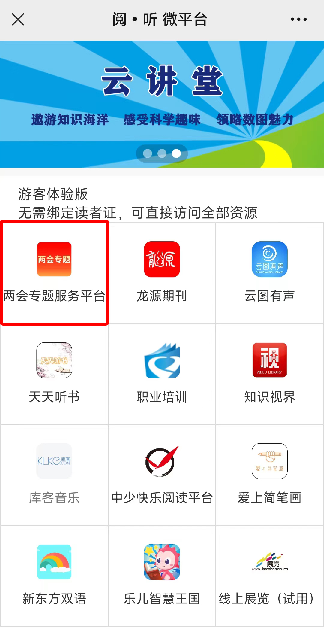 “天津图书馆”微信公众号资源服务