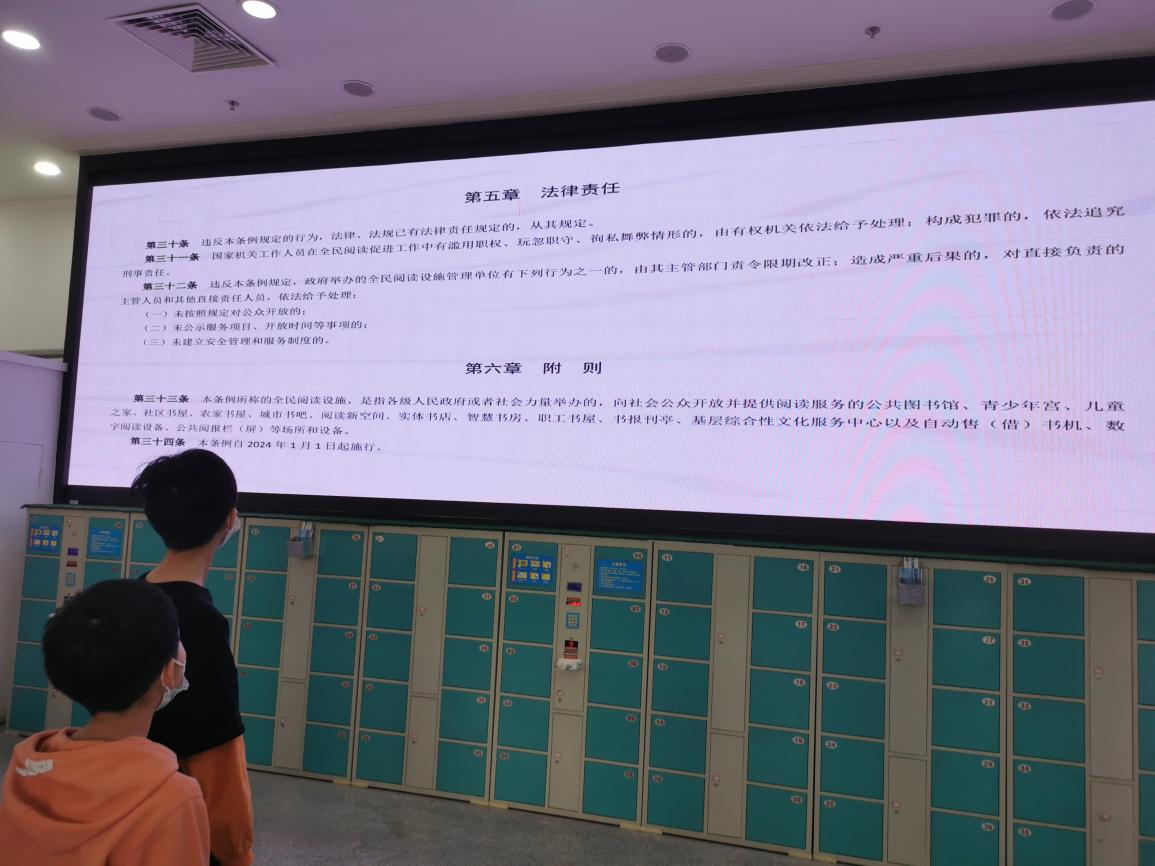梦娃绘本馆开展了“知识伴成长,童心耀未来”主题大屏展播宣传活动,馆内大屏幕持续滚动播放《天津市全民阅读促进条例》,供读者了解《条例》细则,学习《条例》内容,认识到阅读的重要性和意义,吸引更多读者、家庭加入到全民阅读推广的队伍中来,共同营造浓厚的全民阅读氛围。