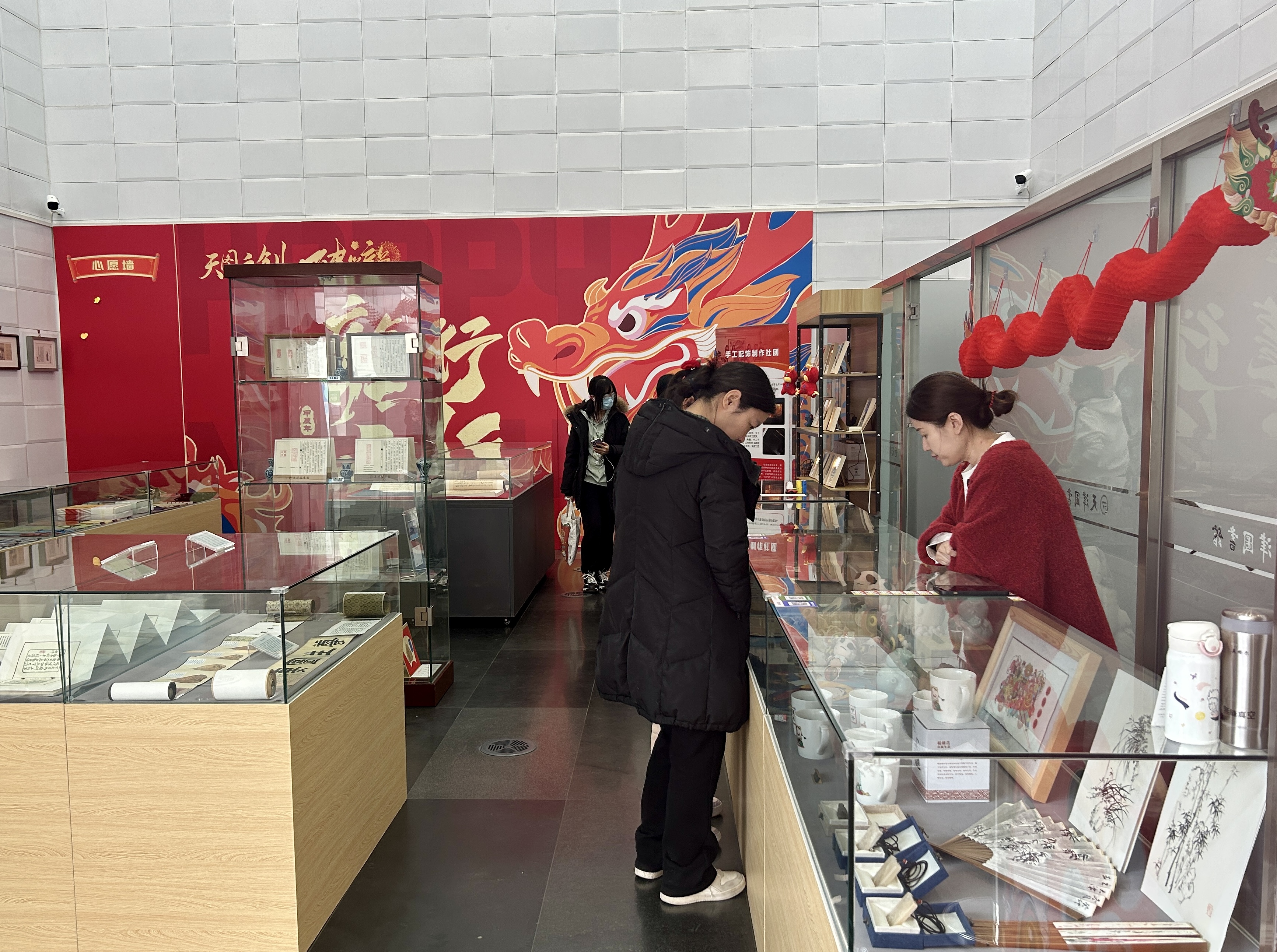 为配合展览,天津工艺美术职业学院与天津图书馆合作开发制作的手工皮具、古籍系列印章等五大主题十一个品类文创产品首次亮相图书馆文创商店,为读者提供丰富的文化产品和公共文化服务供给,满足多元文化消费需求。